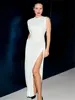 Fleepmart Elegant Backless Pleated Maxi Dress Female Sleeveless Slim See-Through Solid High Waist Party Dress Womens Summer Dress