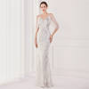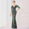 Fleepmart Elegant Beading Evening Dress Women Green Sequin Dress Party Strap Maxi Dress Long Prom Dress