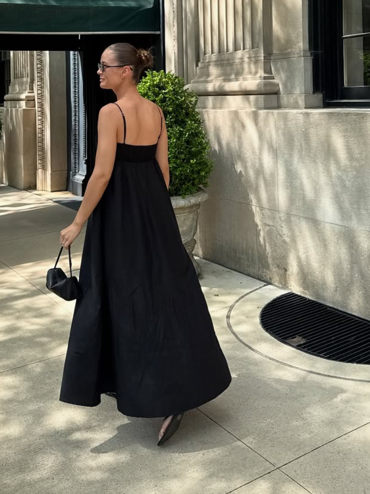 Elegant Black Backless Sling Long Dress
