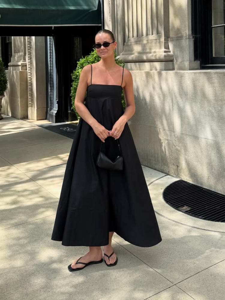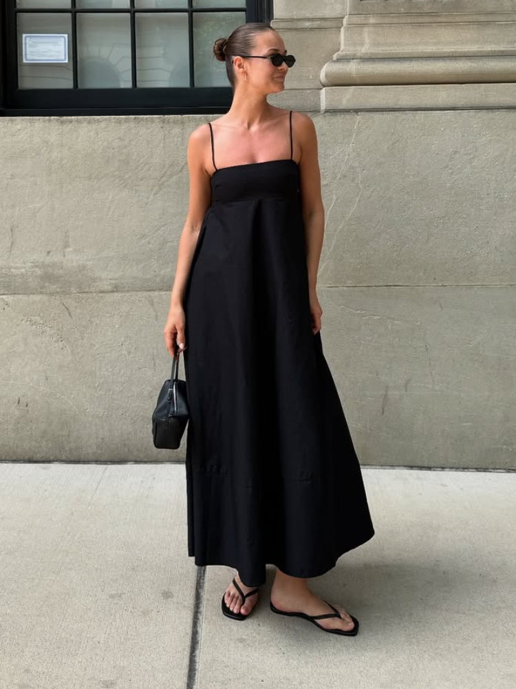 Fleepmart Elegant Black Backless Sling Long Dress Women Sexy Square Neck Sleeveless High Waisted Sling Robe 2025 Chic Lady High Streetwear