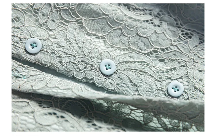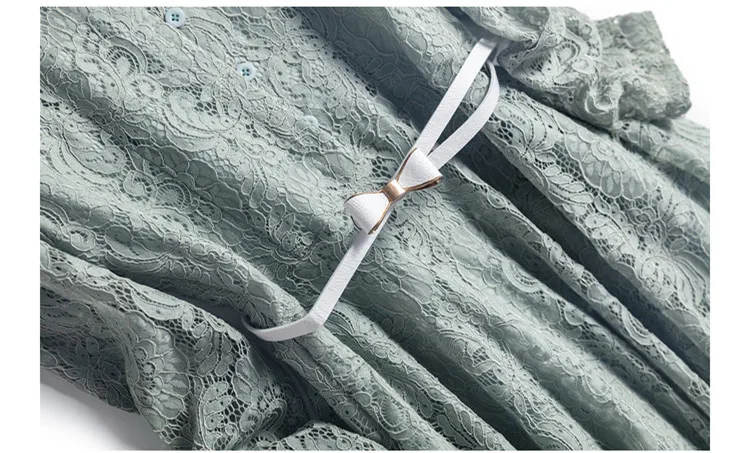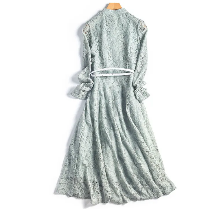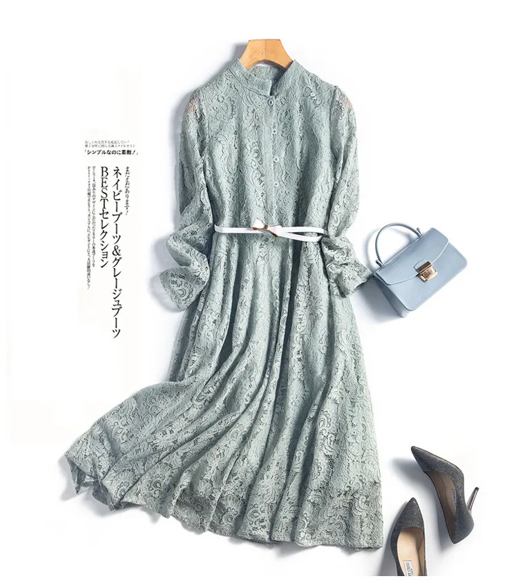 Fleepmart Elegant Blue Lace Long Midi Prom Party Dress Long-Sleeve Slim A-Line Casual Out going Shirt Dress Sashes Belt Autumn Spring 2022