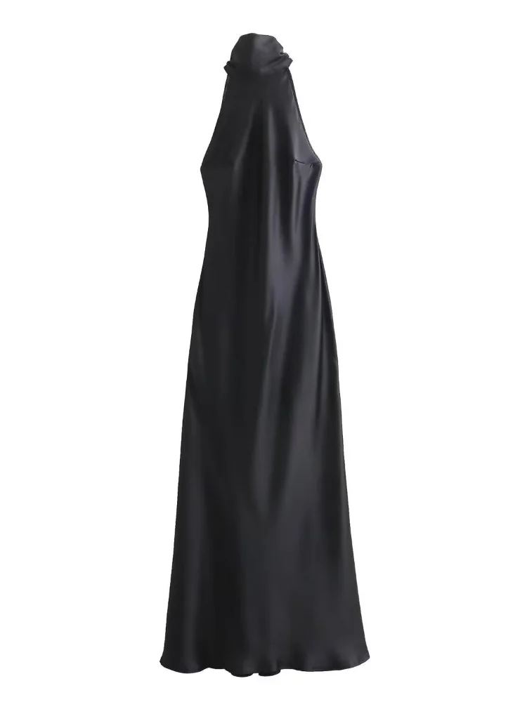 Fleepmart Elegant Brown Satin Halter Lace Up Long Dress Sexy Off Shoulder Backless Bodycon Autumn New Party Robe