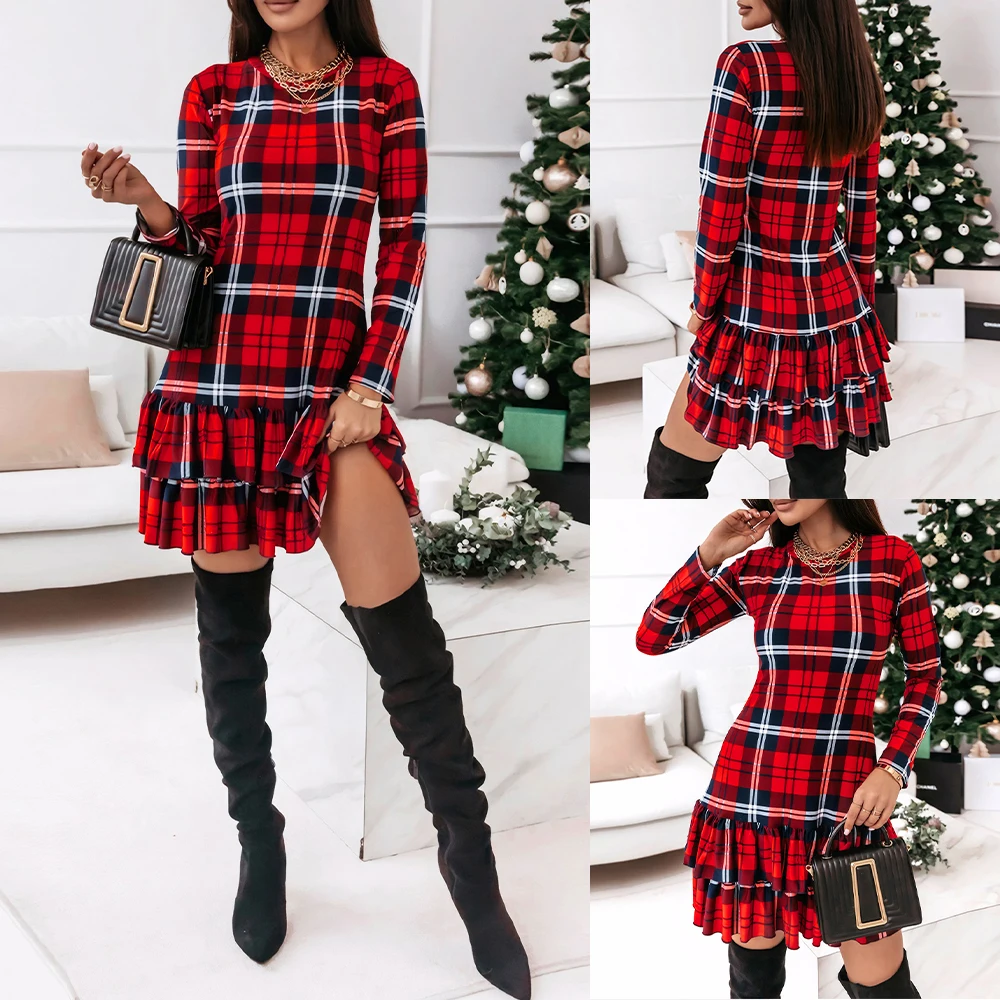 Fleepmart Elegant Christmas Dress for Women Clothing 2025 Winter Long Sleeve Pullover Casual Female Sexy Red Xmas Costumes Bodycon Skirt