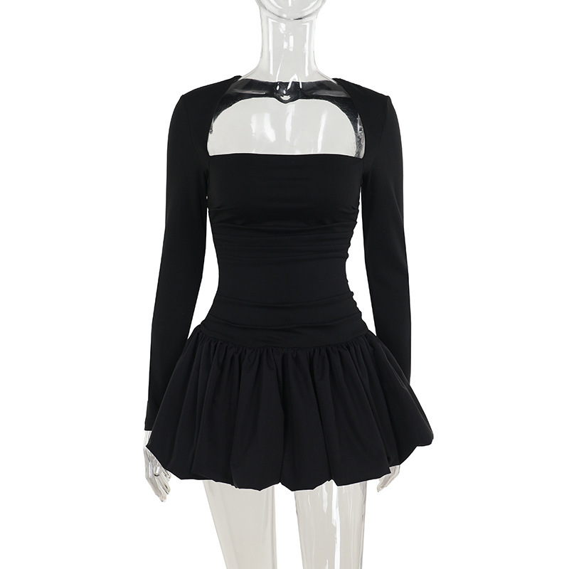 Fleepmart Elegant Cut Out Backless A-Line Mini Dress Club Outfits for Women Long Sleeve Party Sexy Dress