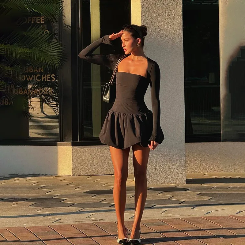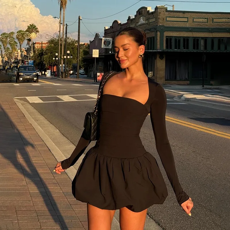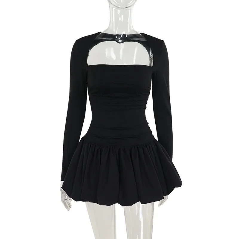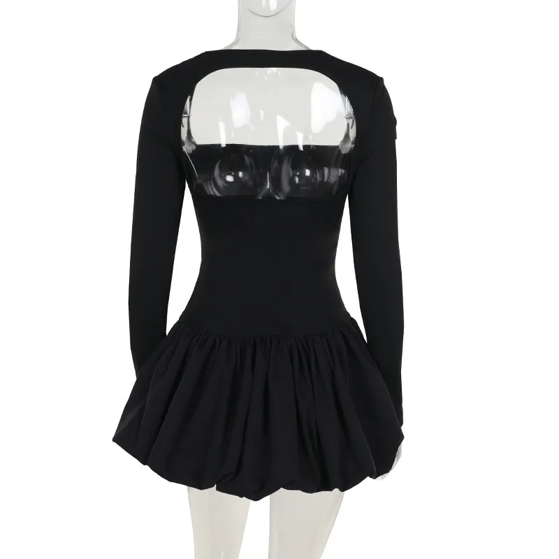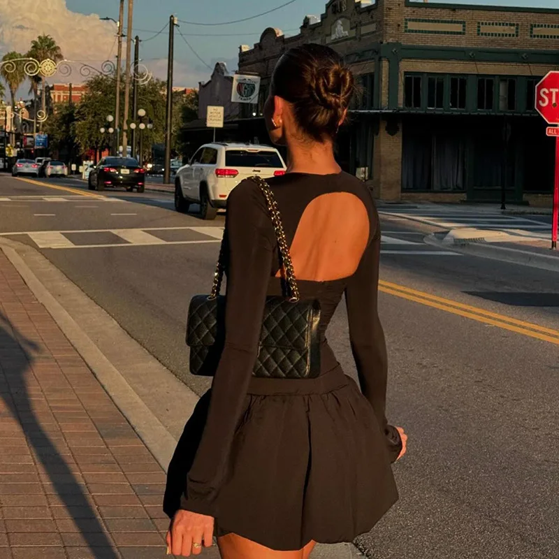 Fleepmart Elegant Cut Out Backless A-Line Mini Dress Club Outfits for Women Long Sleeve Party Sexy Dress