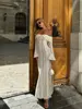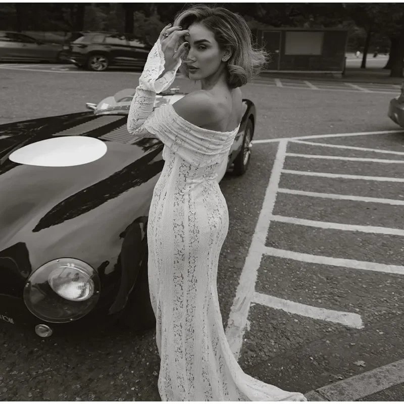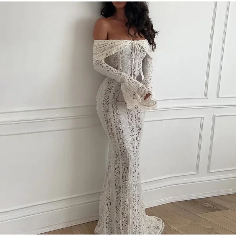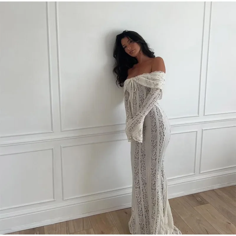 Fleepmart Elegant Cut Out Flared Long Sleeve Maxi Dress Women’s Lace Up Hollow Out Off Shoulder Bodycon Vestidos 2025 Lady Outwear Vestido