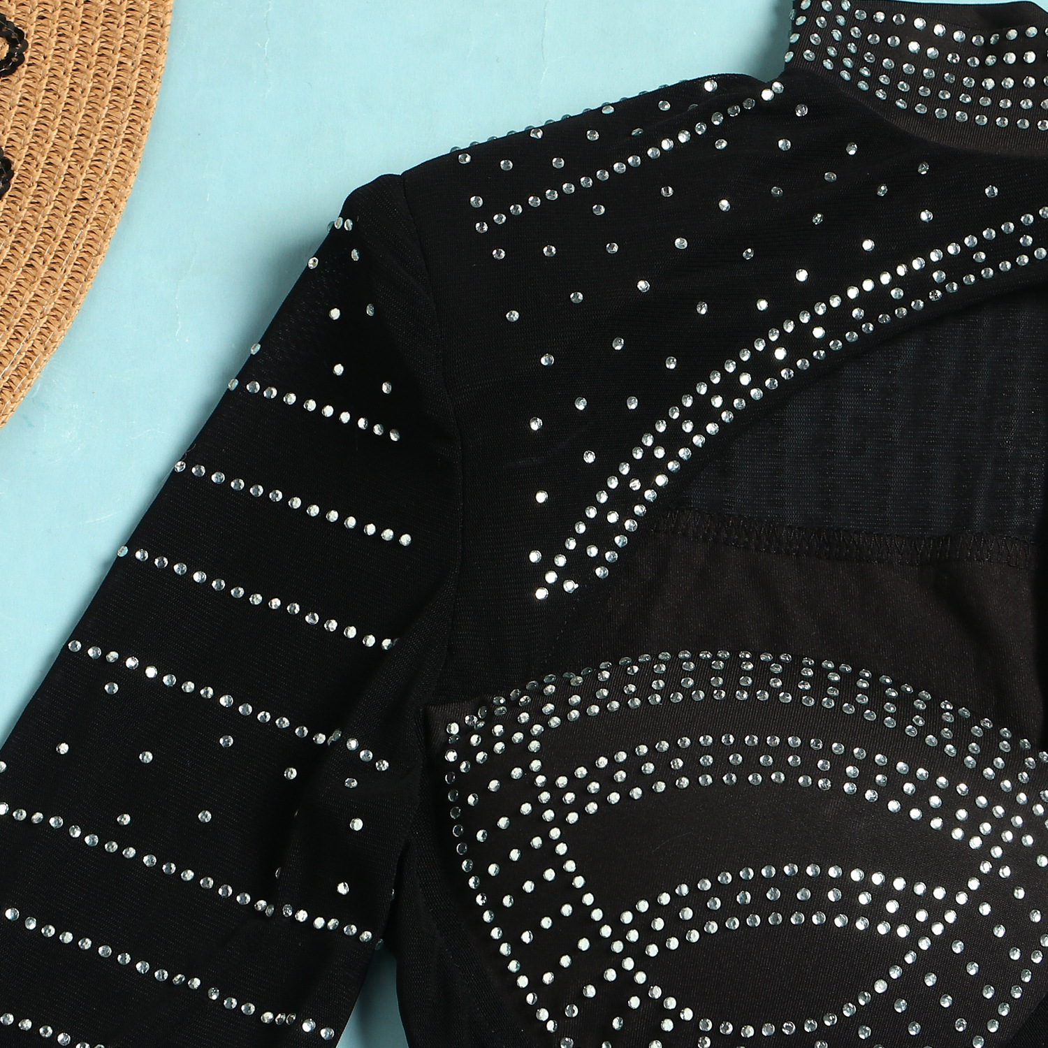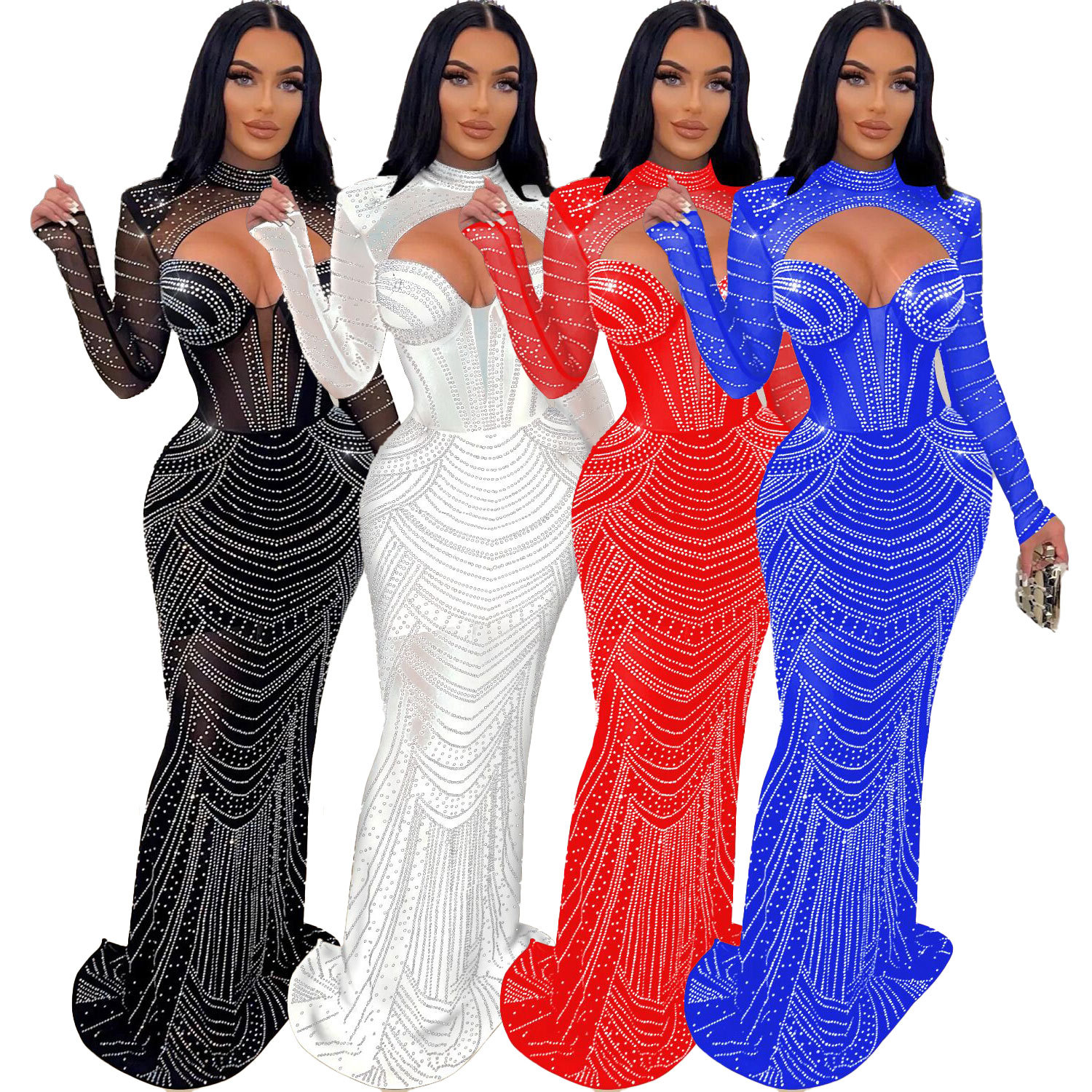 Fleepmart Elegant Diamond Rhinestone Sheer Msh Evening Prom Floor Length Dress Women Outfits Vestidos Sexy See Through Party Club Dresses