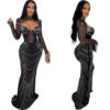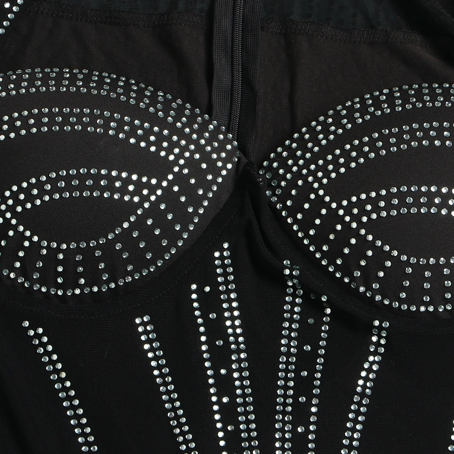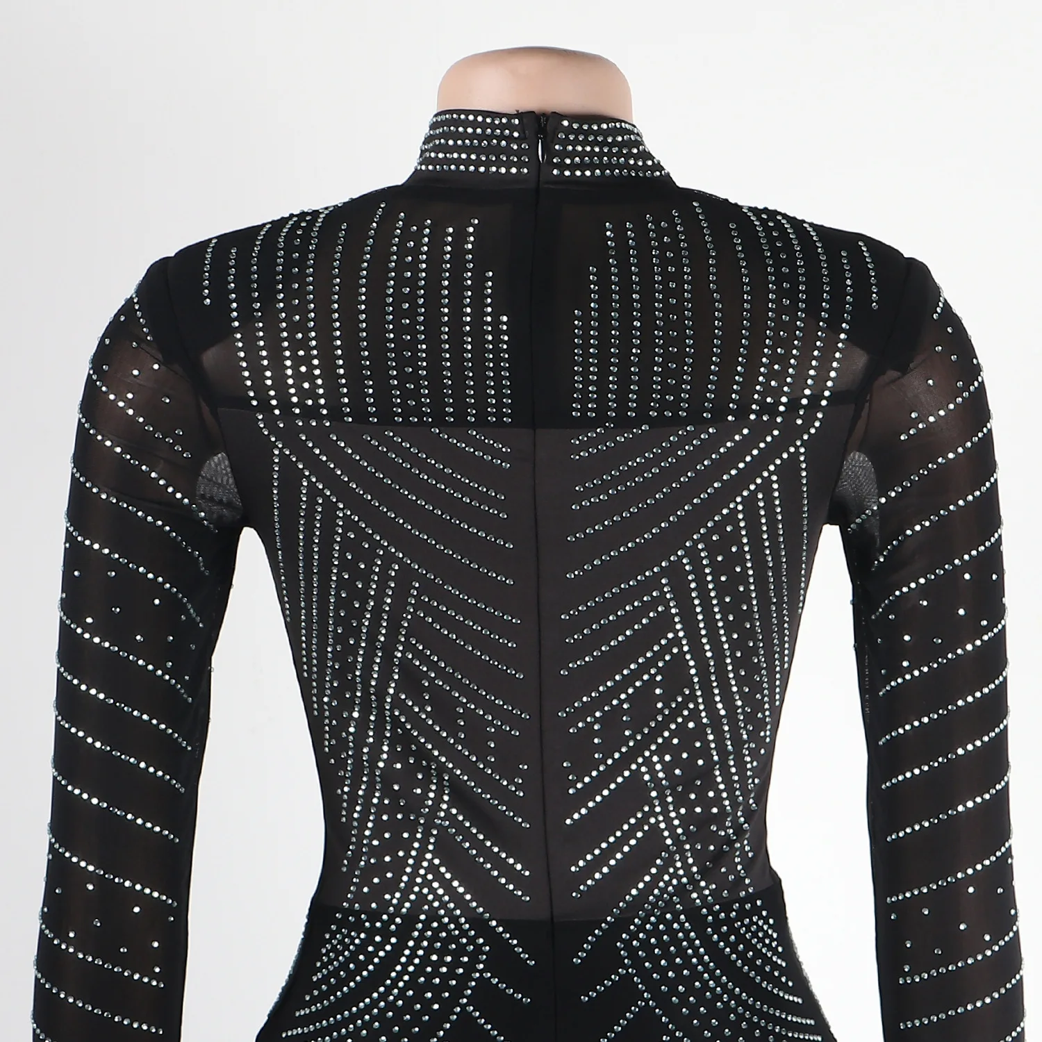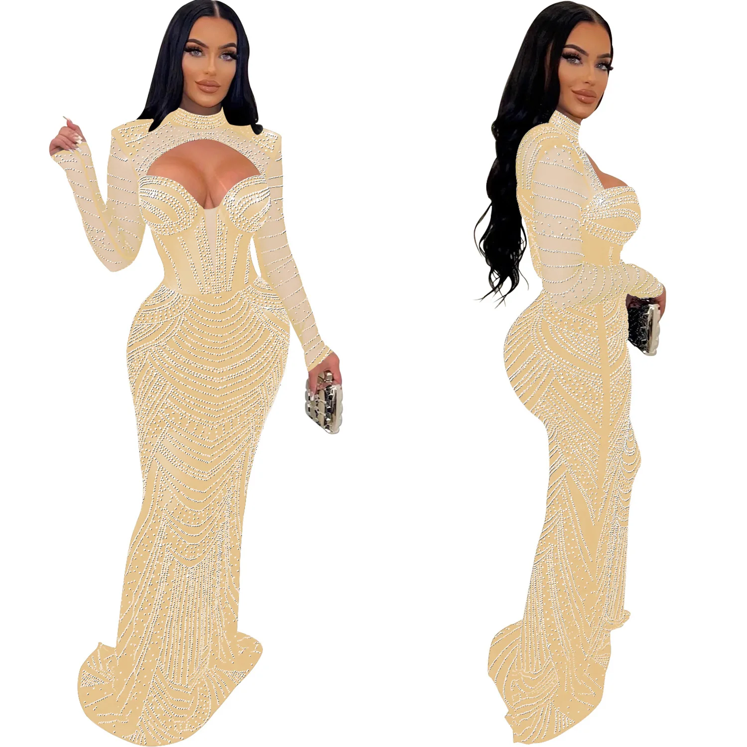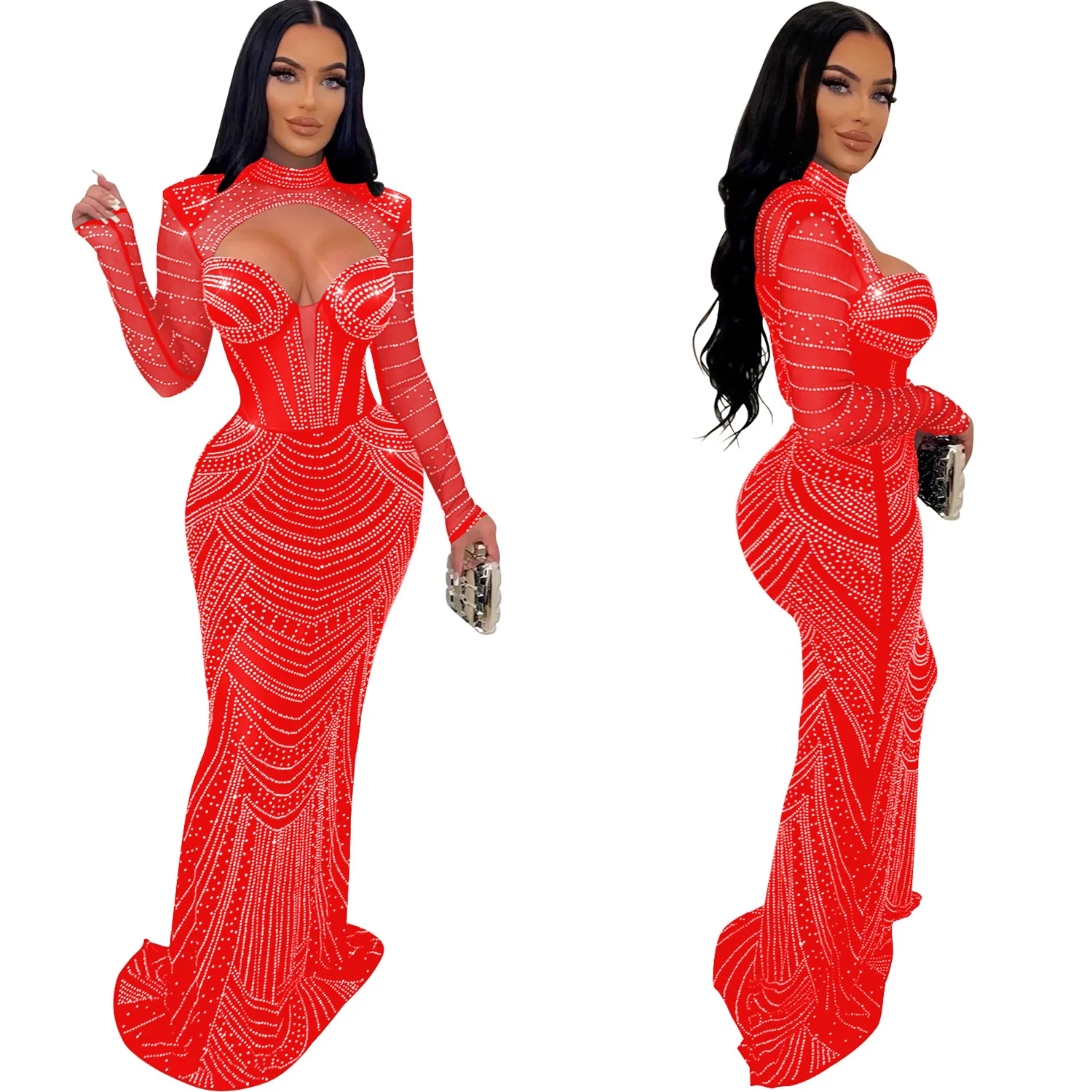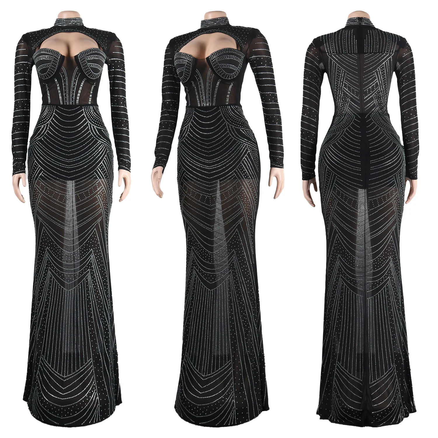 Fleepmart Elegant Diamond Rhinestone Sheer Msh Evening Prom Floor Length Dress Women Outfits Vestidos Sexy See Through Party Club Dresses