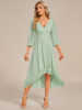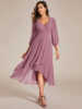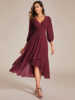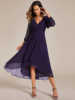 Fleepmart Elegant Evening Dress Long Sleeves Pleated Ruffles Knee-Length 2024 of Chiffon Navy Blue Wedding Guest Dresses