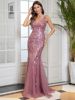 Fleepmart Elegant Evening Dresses Mermaid Sleeveless Double V-Neck Sequin 2024Sexy Fishtail Orchid Bridesmaid dresses