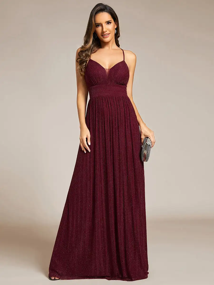 Fleepmart Elegant Evening Dresses Sparkle Sleeveless Backless Formal with V-Neck 2024 of Burgundy Bridesmaid Dress