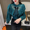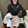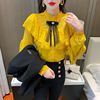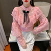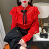 Fleepmart Elegant Fashion Lace Bottoming Women's Shirt Autumn Hollow Flower Ruffle Blouse Bow Beading Long Sleeve 6 Colors Blusas