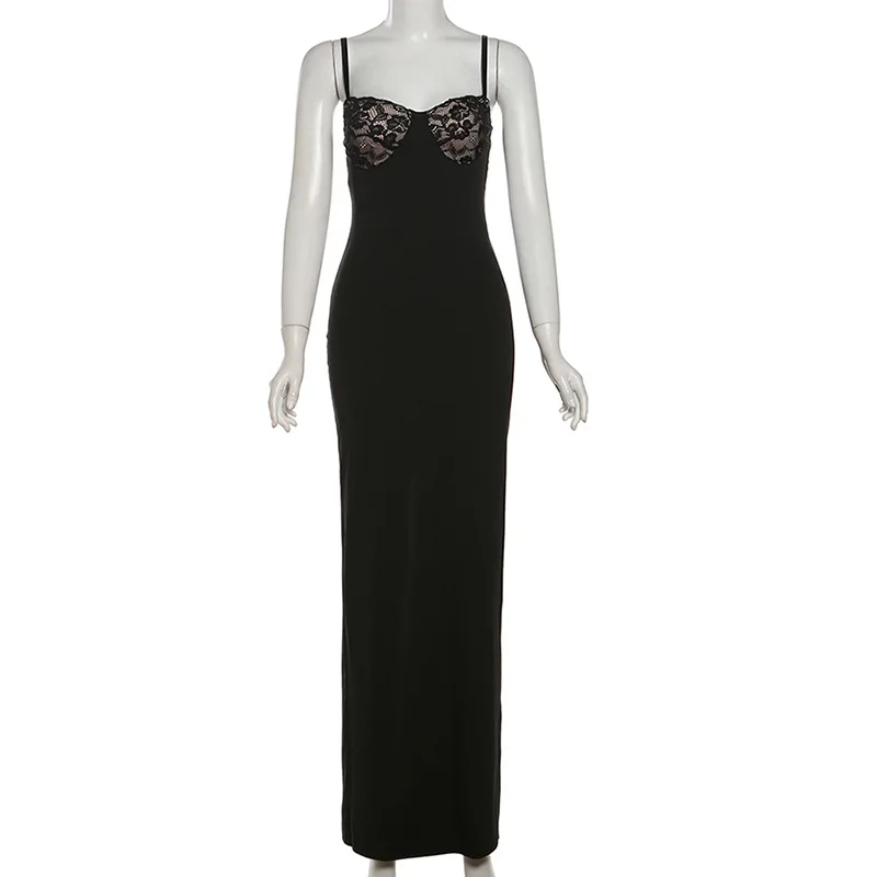 Fleepmart Elegant Fashion Lace Slip Maxi Women Club Party Summer Outfits Back Split Long Dress Clothes