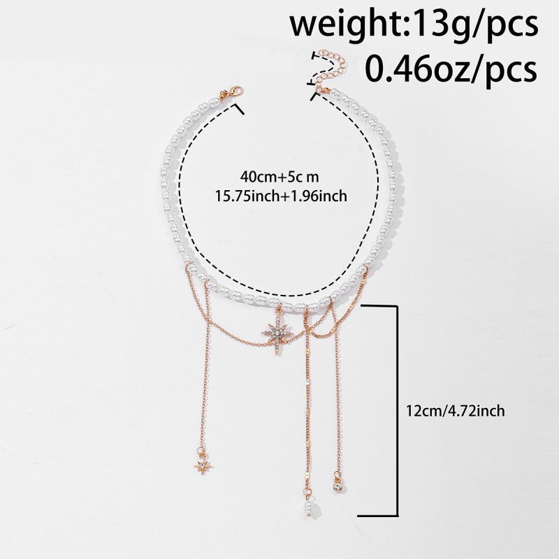Fleepmart Elegant Faux Pearls Chain Necklace Star Tassels Neckchain For Fashionable Women Stylish Clavicle Chain