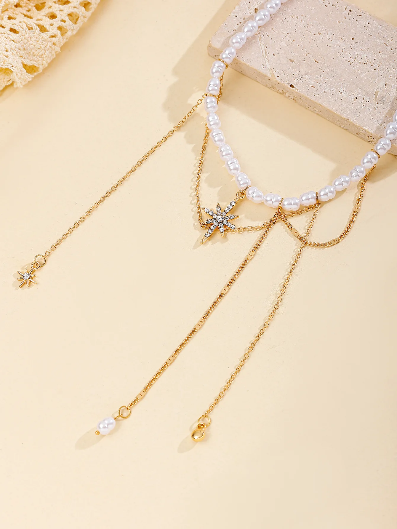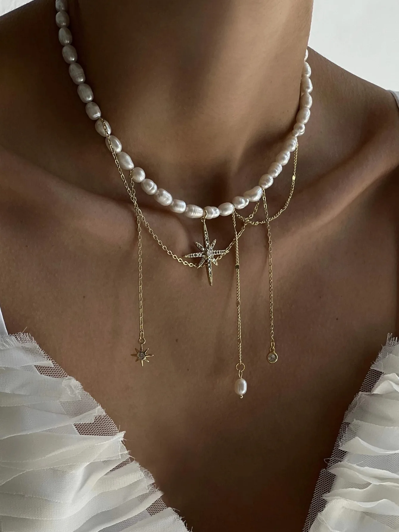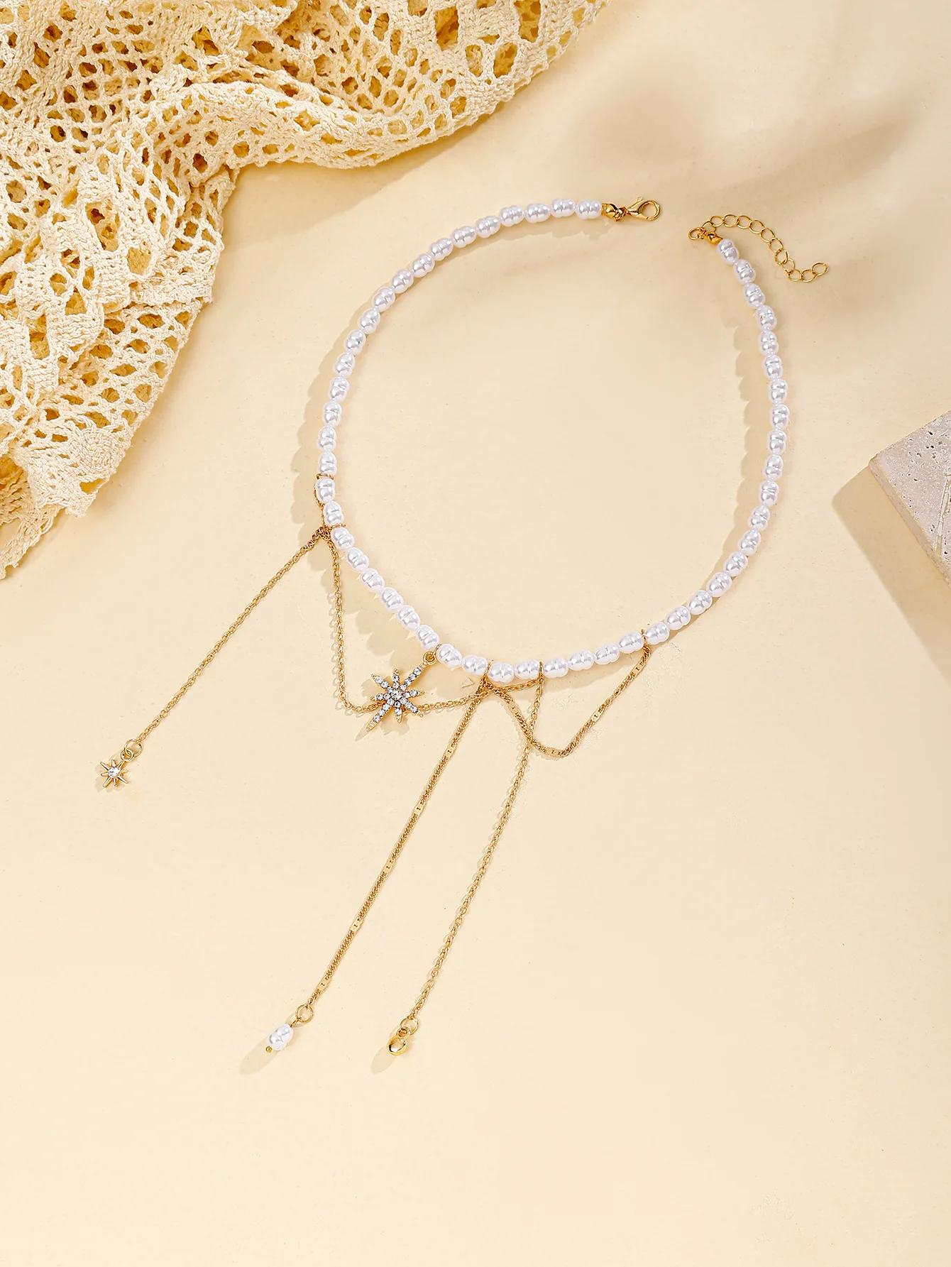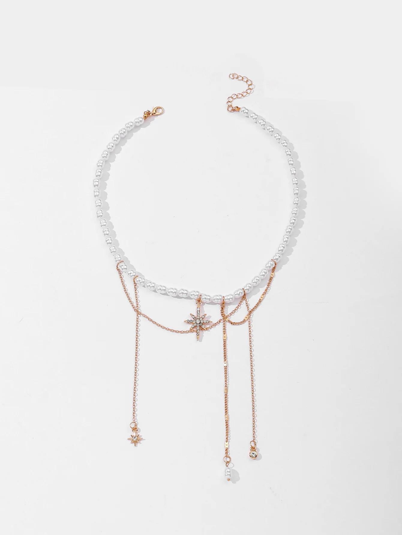 Fleepmart Elegant Faux Pearls Chain Necklace Star Tassels Neckchain For Fashionable Women Stylish Clavicle Chain