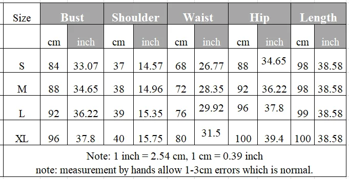 Note: 1 inch = 2.54 cm, 1 cm = 0.39 inch