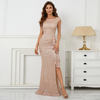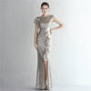 Fleepmart Elegant Gold Sequin Dress Women Ruffles Short Sleeve Evening Dress Party Maxi Dress Long Prom Dress