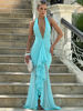 Fleepmart Elegant Halter Deep V Neck Sexy Maxi Dress Women Fashion Sleeveless Backless Ruched Evening Club Party Long Dress