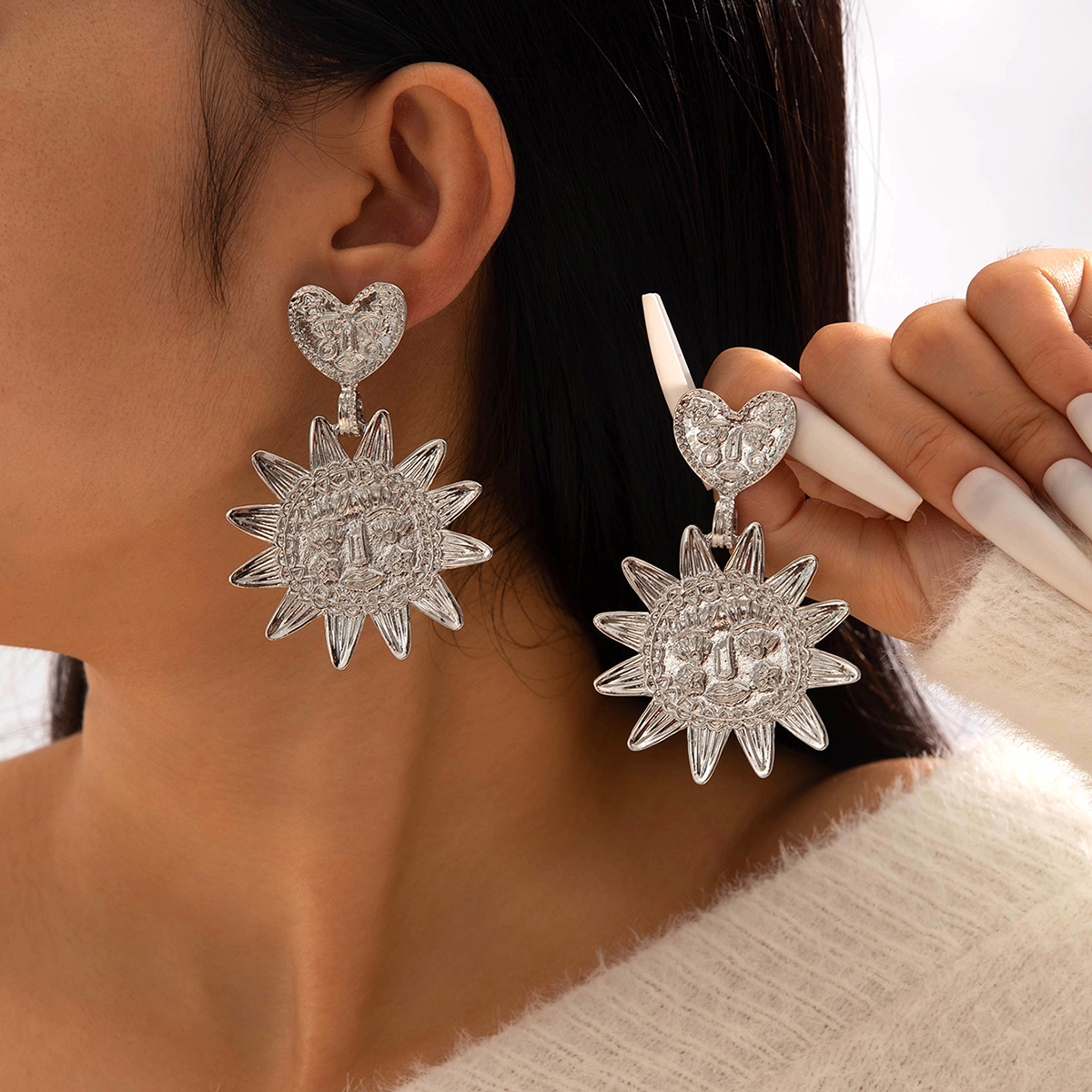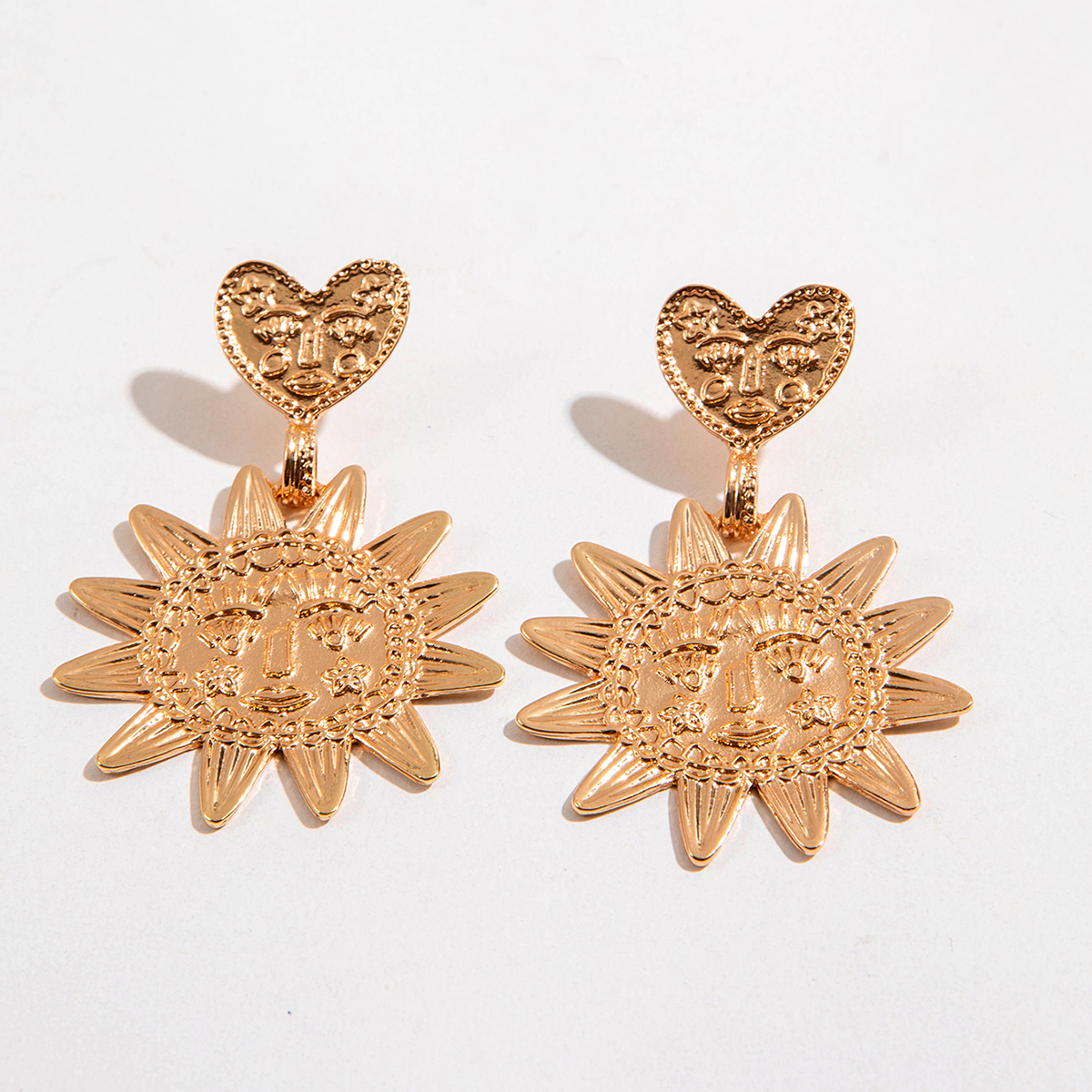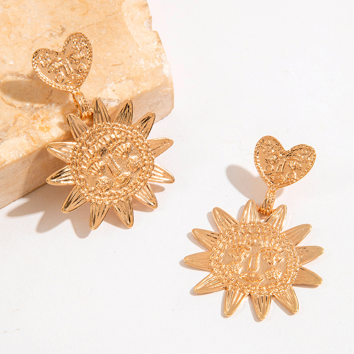 Fleepmart Elegant Hollow Flowers Sun Alloy Stud Earrings For Women New Trendy Gold Color Metal Statement Earrings Heart Jewelry