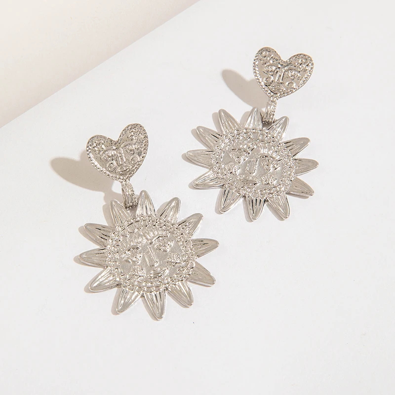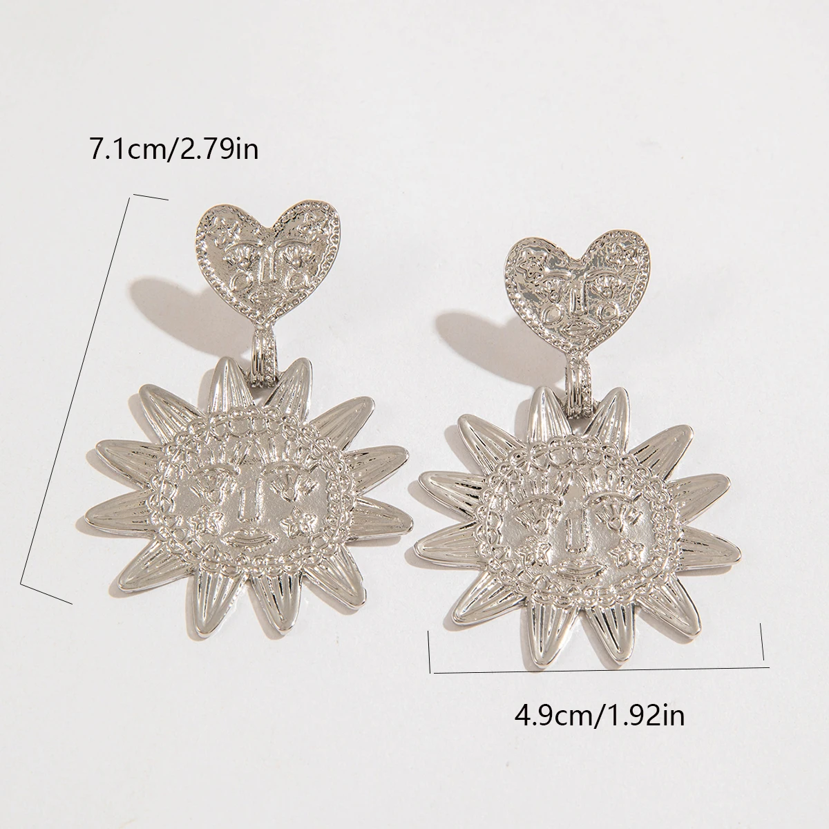 Fleepmart Elegant Hollow Flowers Sun Alloy Stud Earrings For Women New Trendy Gold Color Metal Statement Earrings Heart Jewelry