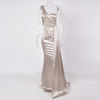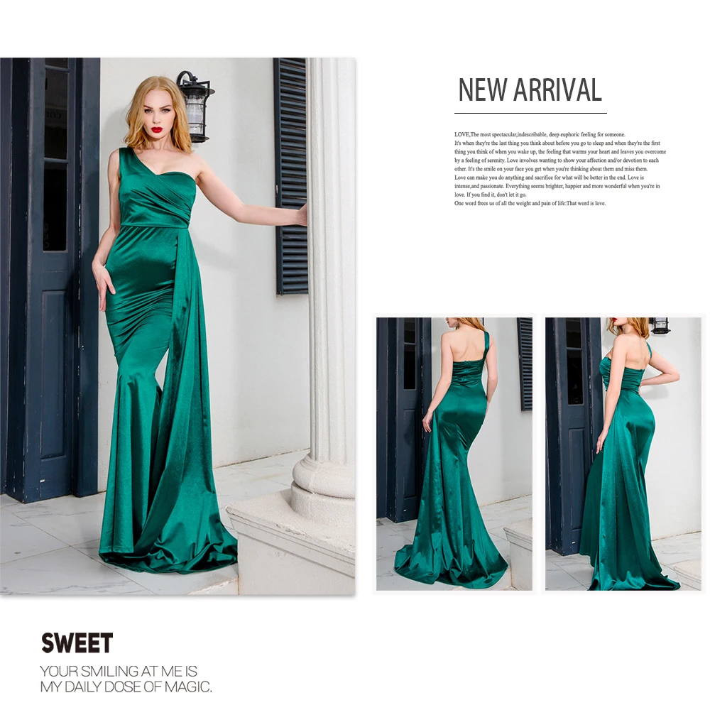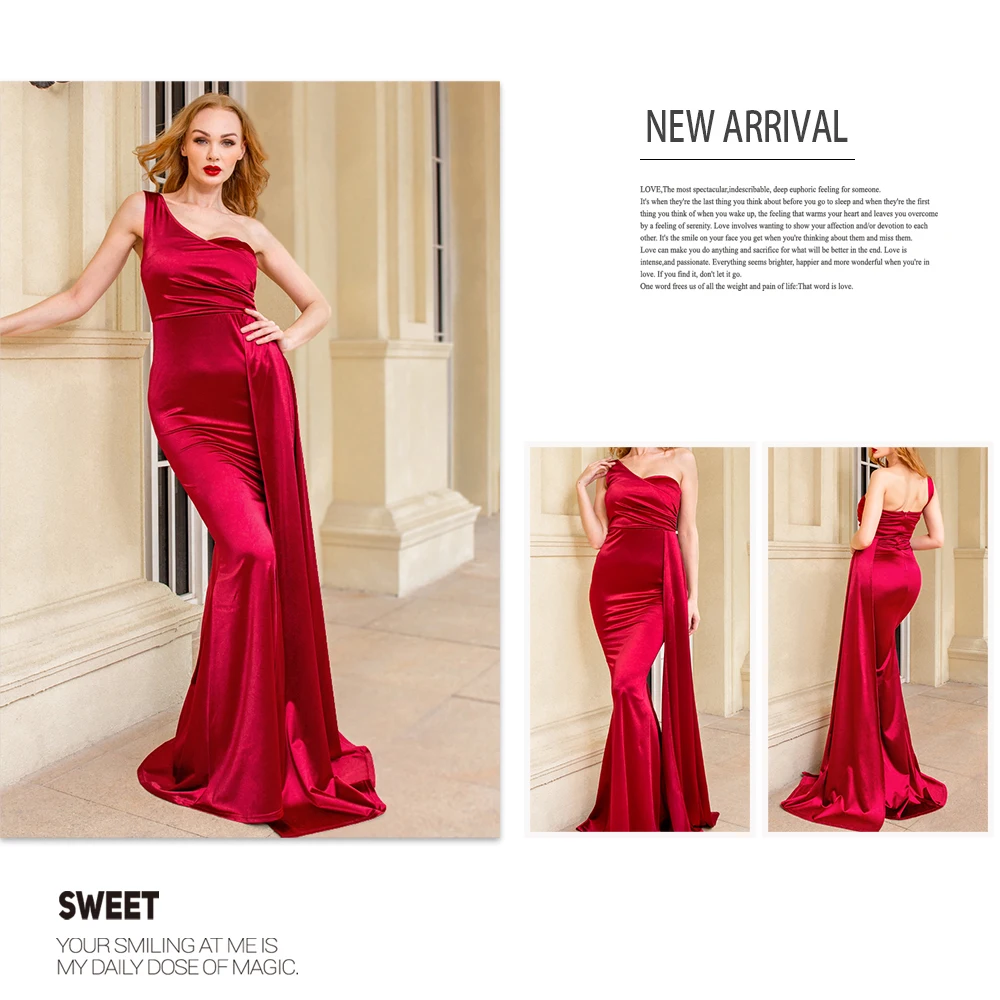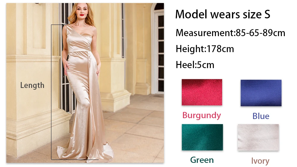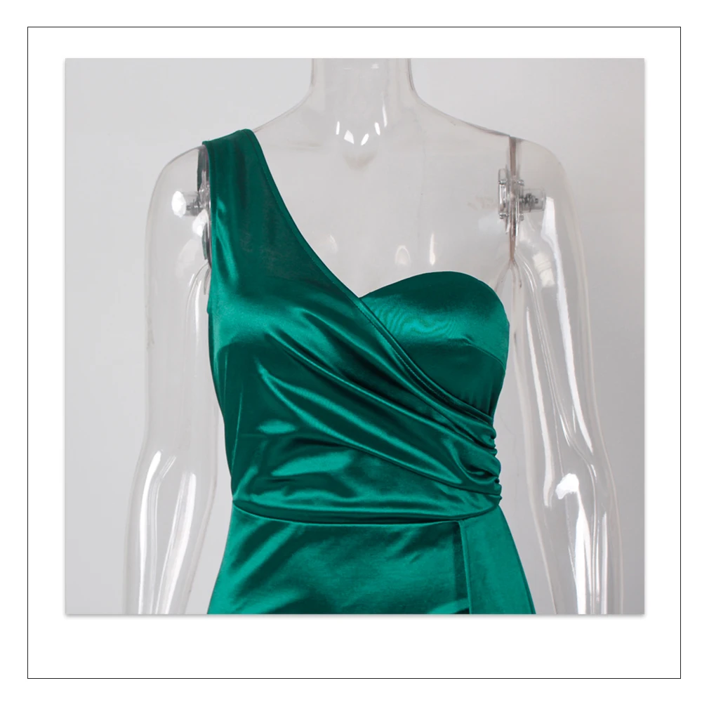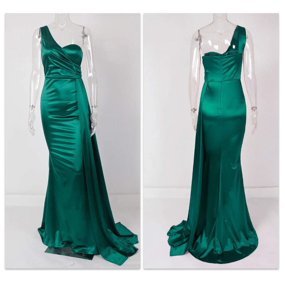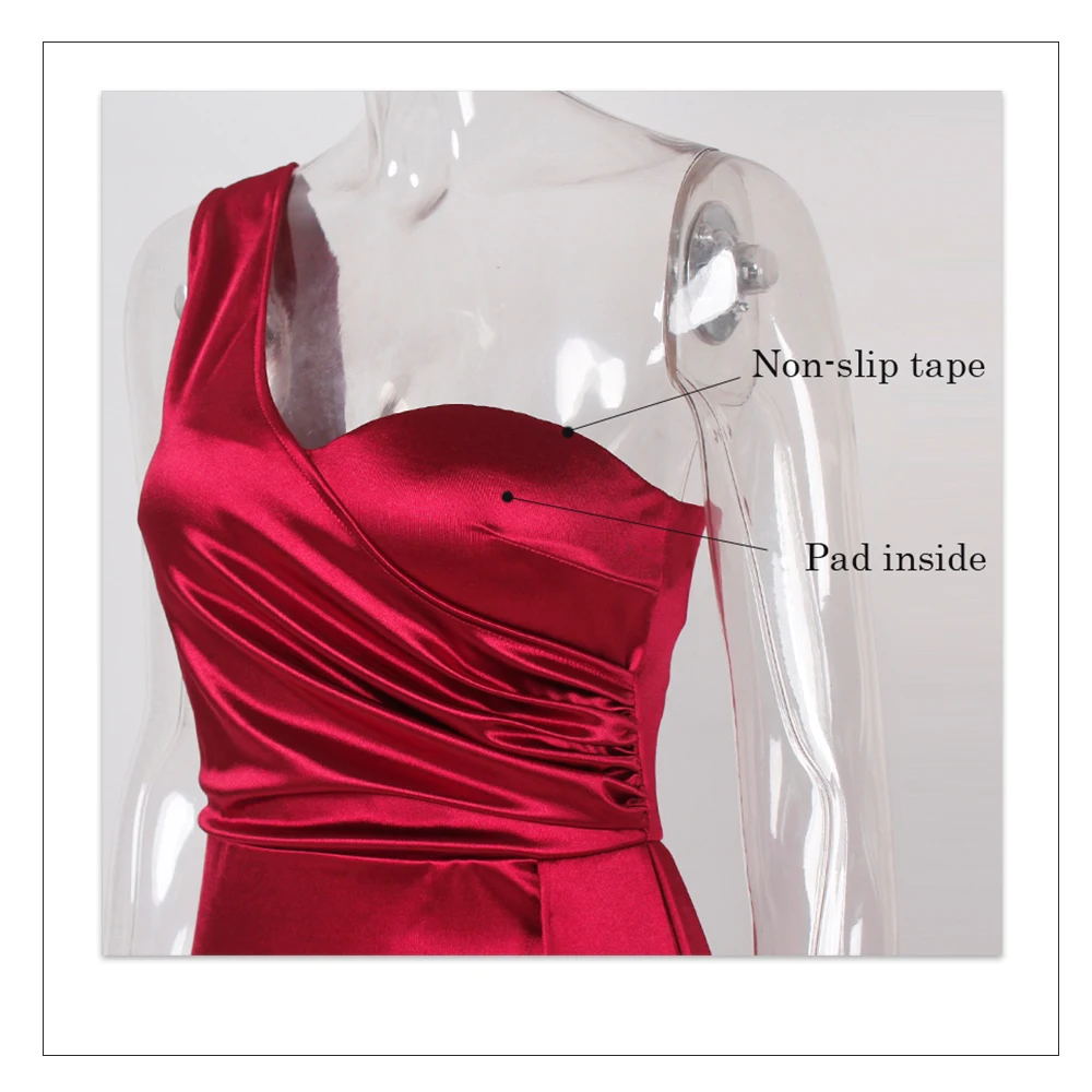 Fleepmart Elegant Ivory One Shoulder Ribbon Summer Dress Padded Pleated Sleeveless Stretchy Satin Women Party Long Tight Blue Dresses 2022