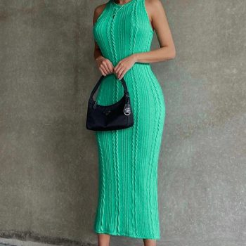 Fleepmart Elegant Knit Dress For Women White Slim O-neck Single Breasted Short Sleeve Long Dresses Female 2025 Spring Fashion Lady Robe