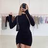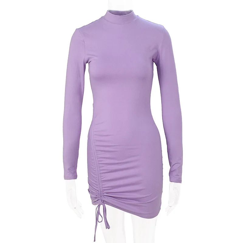 Fleepmart Elegant Lace Up Dress Solid Pleated Slim Fit Party Bodycon Female Sexy Mini Dresses Purple Black Vestidos
