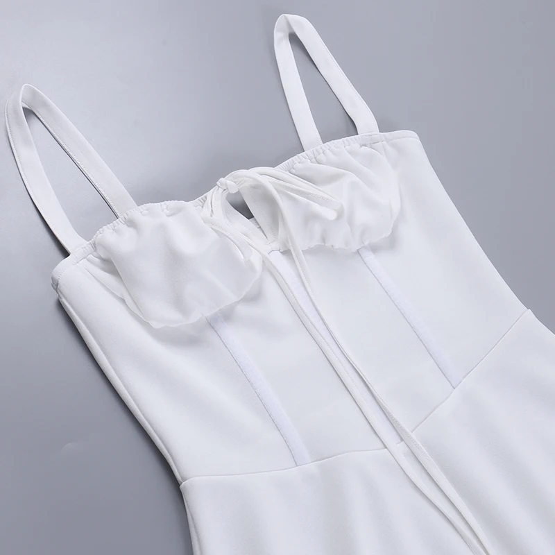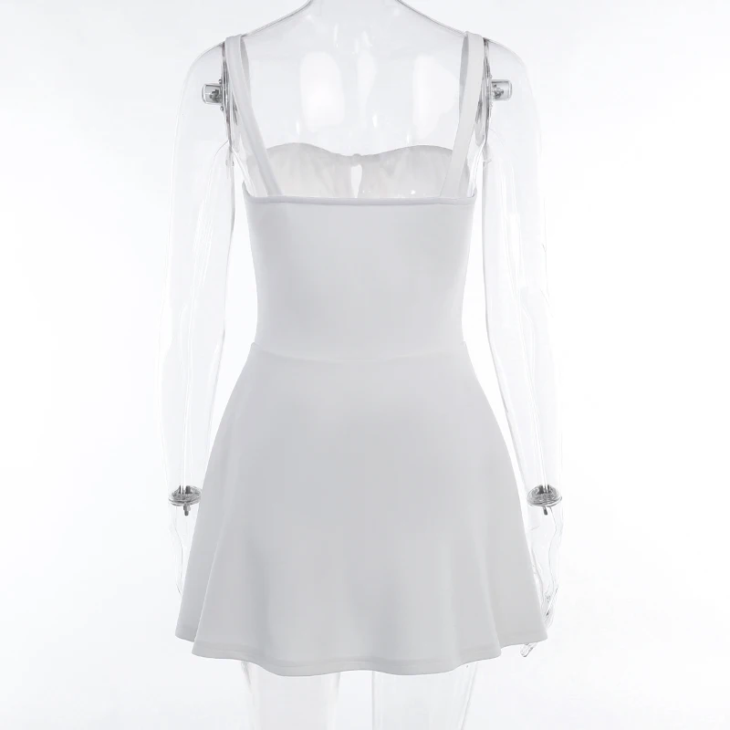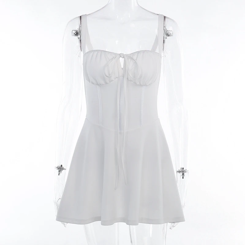 Fleepmart Elegant Lace Up Front Spaghetti Strap Dress Women Summer Solid Sexy Backless A-line Dresses Casual Party Dress