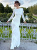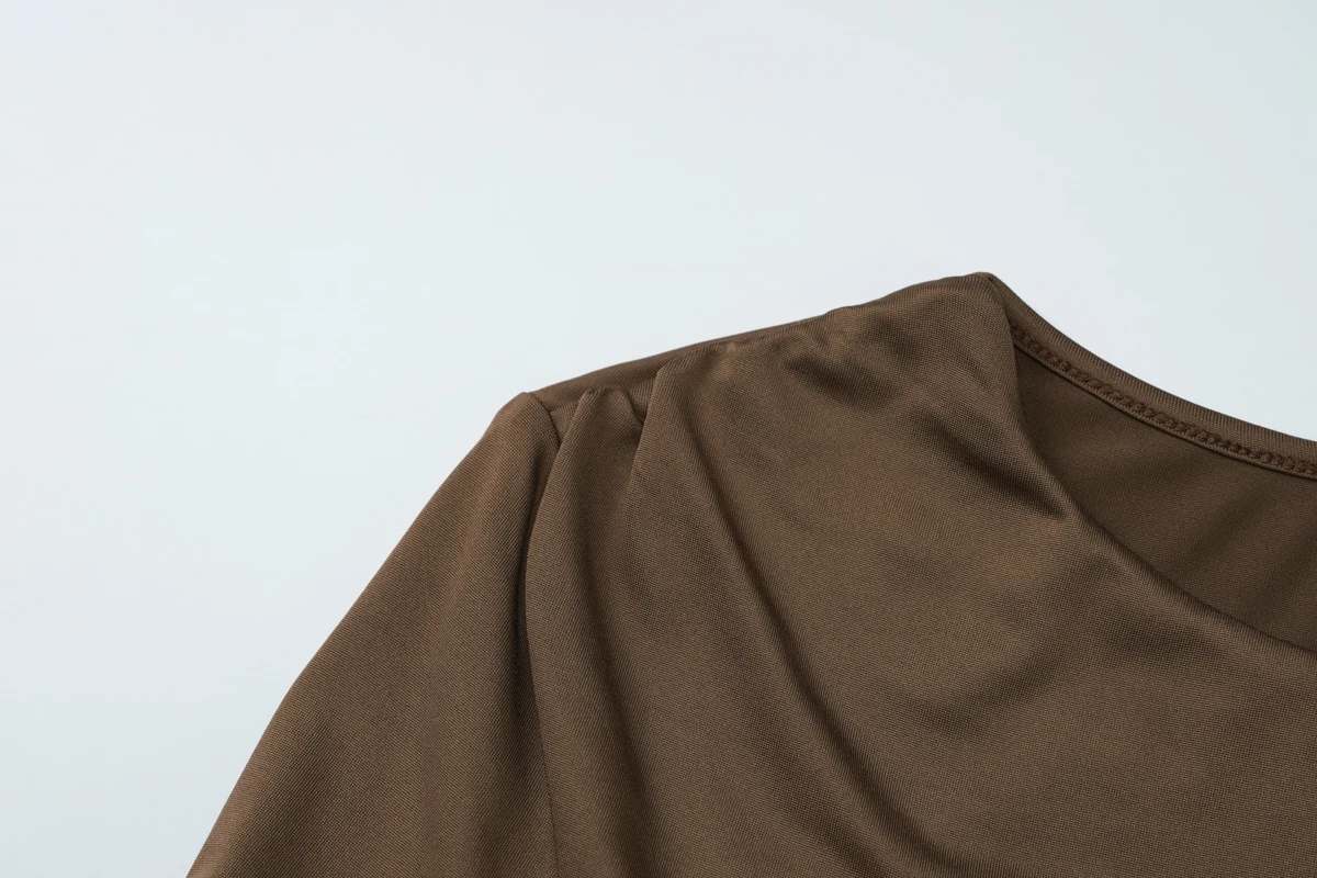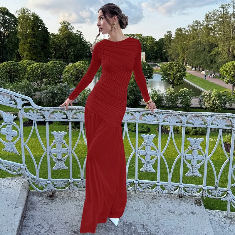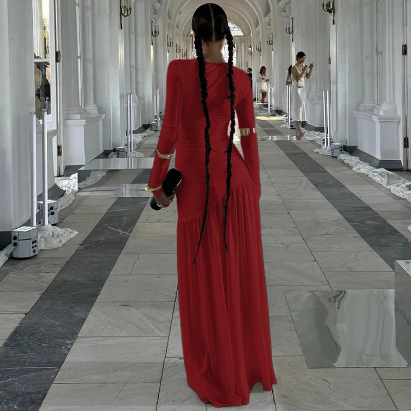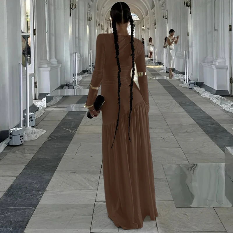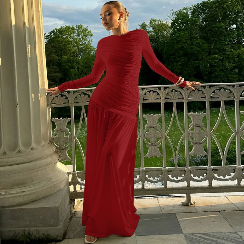Fleepmart Elegant Long Sleeve Ruched Sexy Bodycon Pleated Maxi Dress 2025 Autumn Winter Women Evening Party Clothes Streetwear