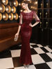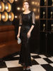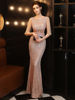 Fleepmart Elegant Maxi Dress Gold Sequin Evening Dress Women Formal Long Sleeve Beads Party Dress