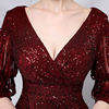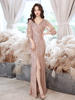 Fleepmart Elegant Maxi Dress Gold Sequin Evening Dress Women Formal Long Sleeve Party Dress