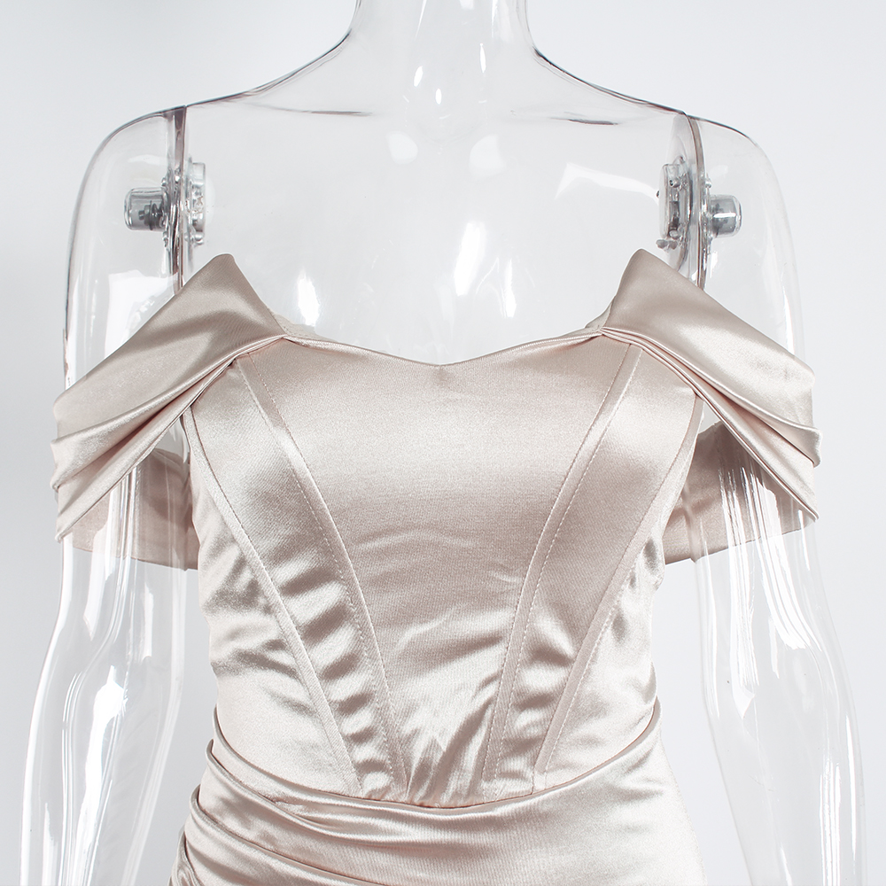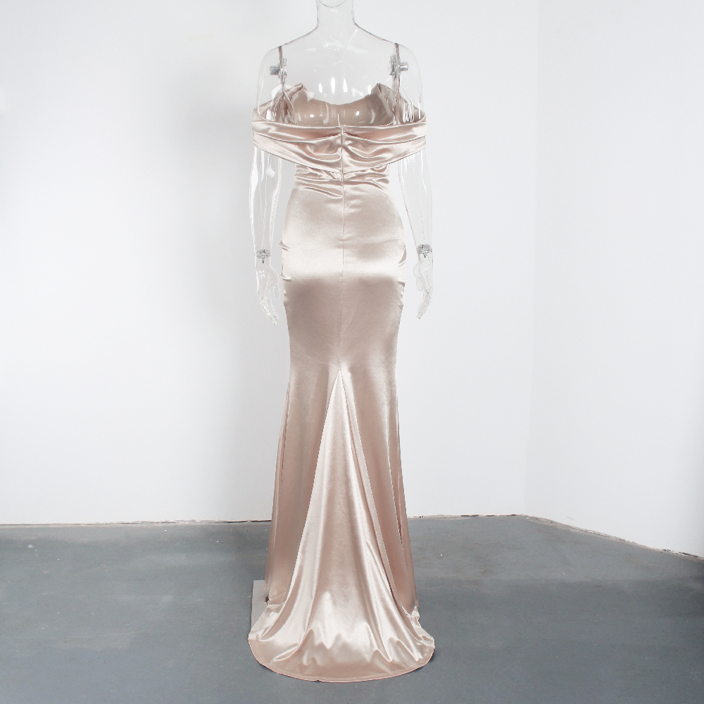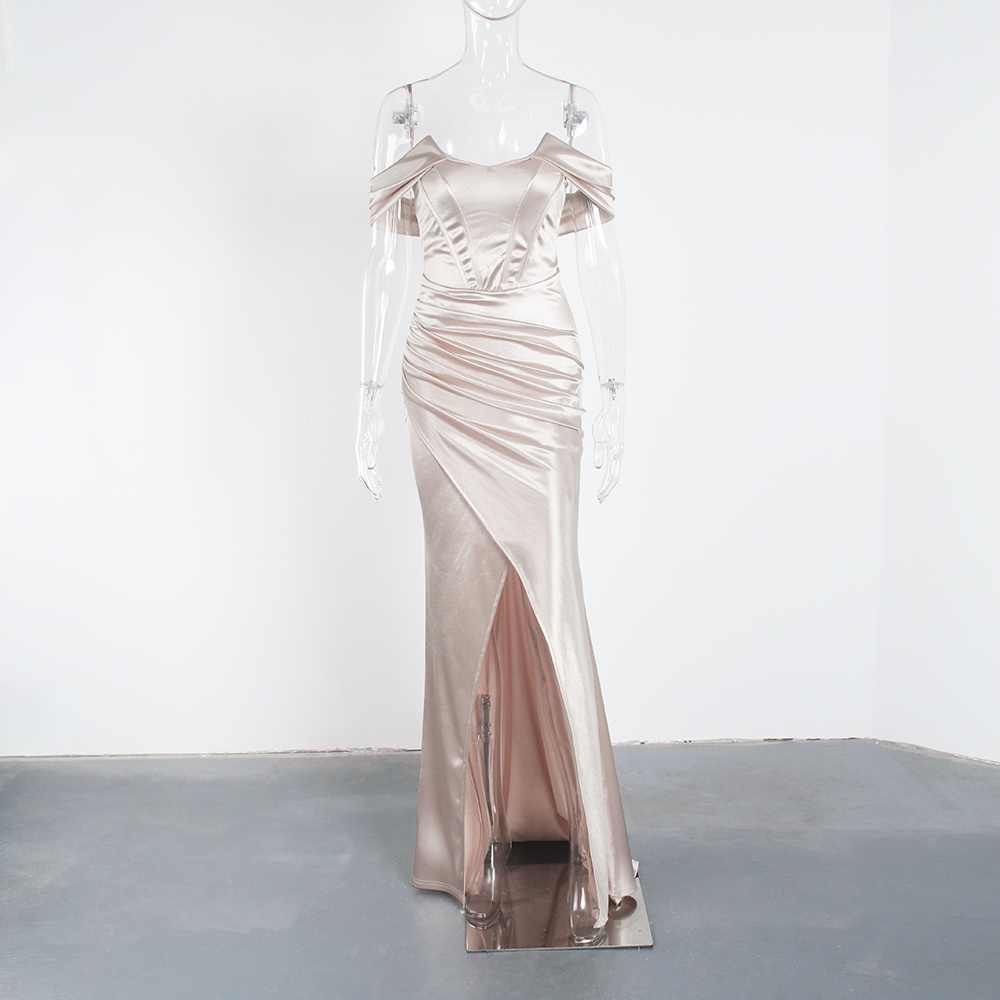 Fleepmart Elegant Off Shouder Fuchsia Stretch Satin Party Dress Boning Pleated Split Dress Long Backless Formal