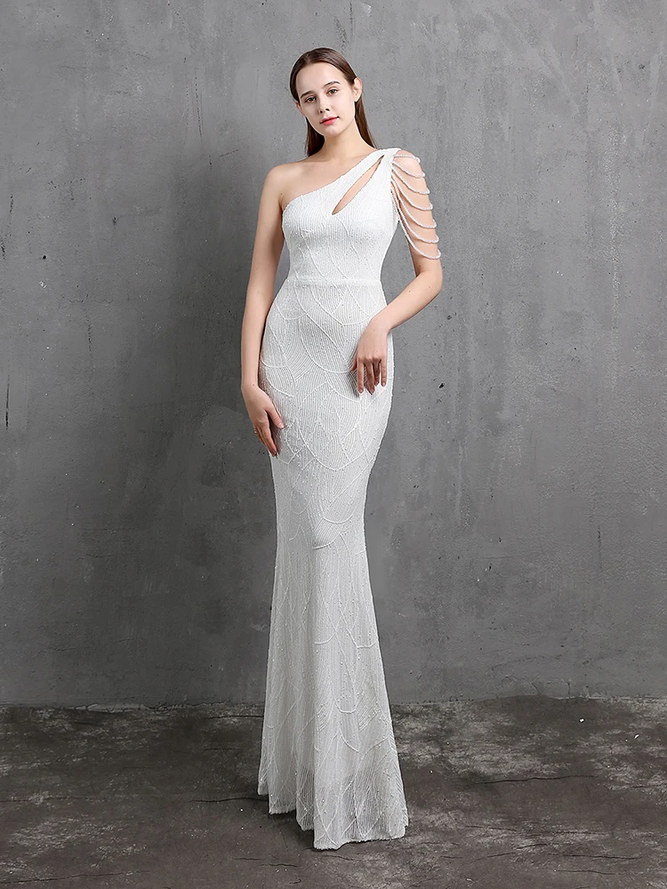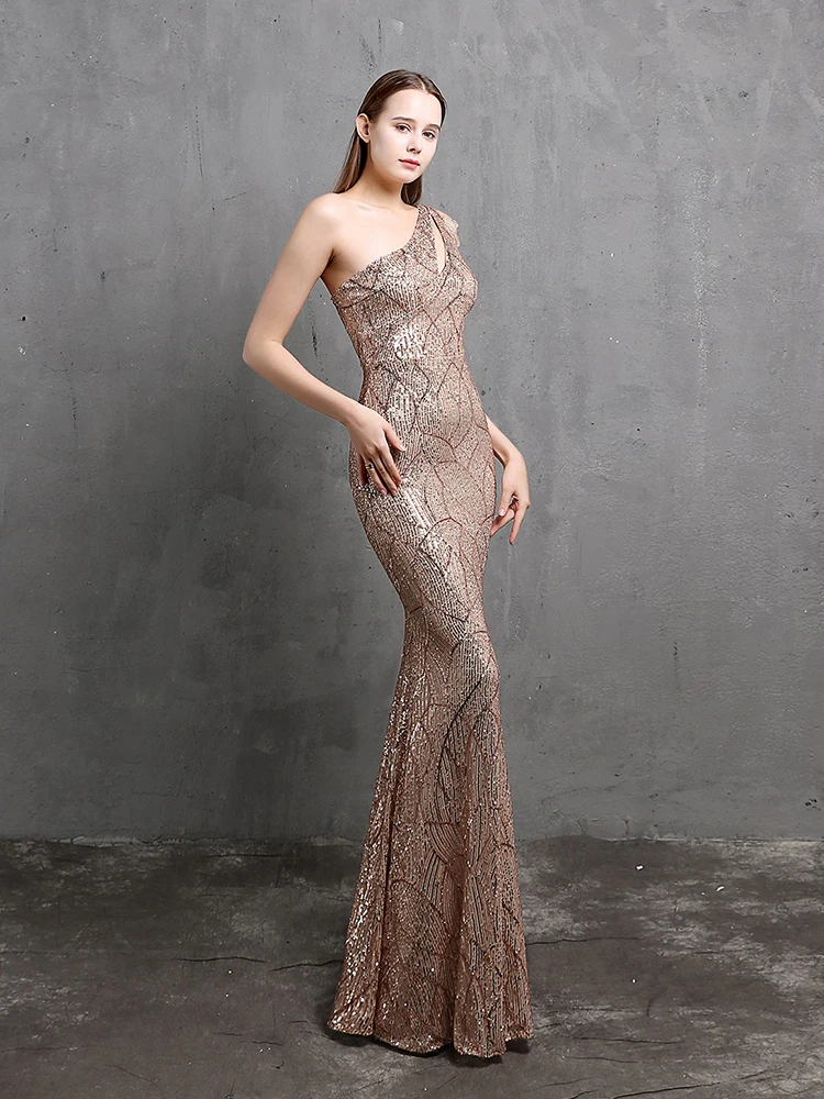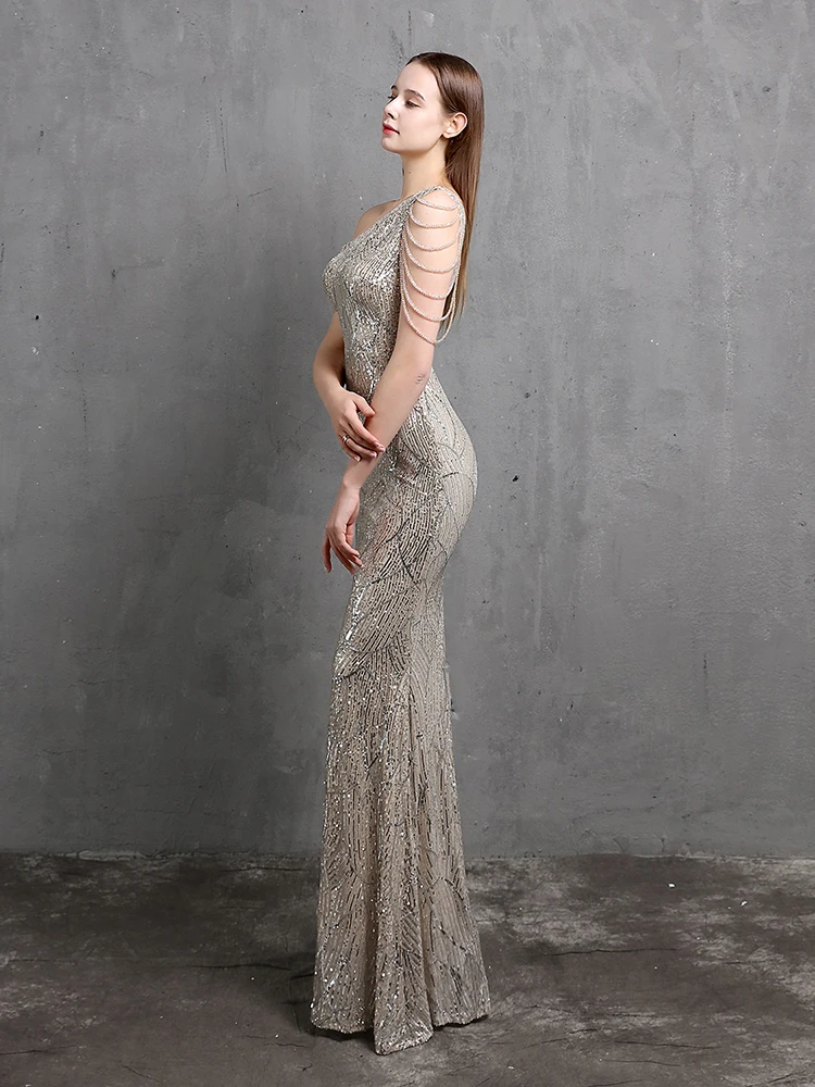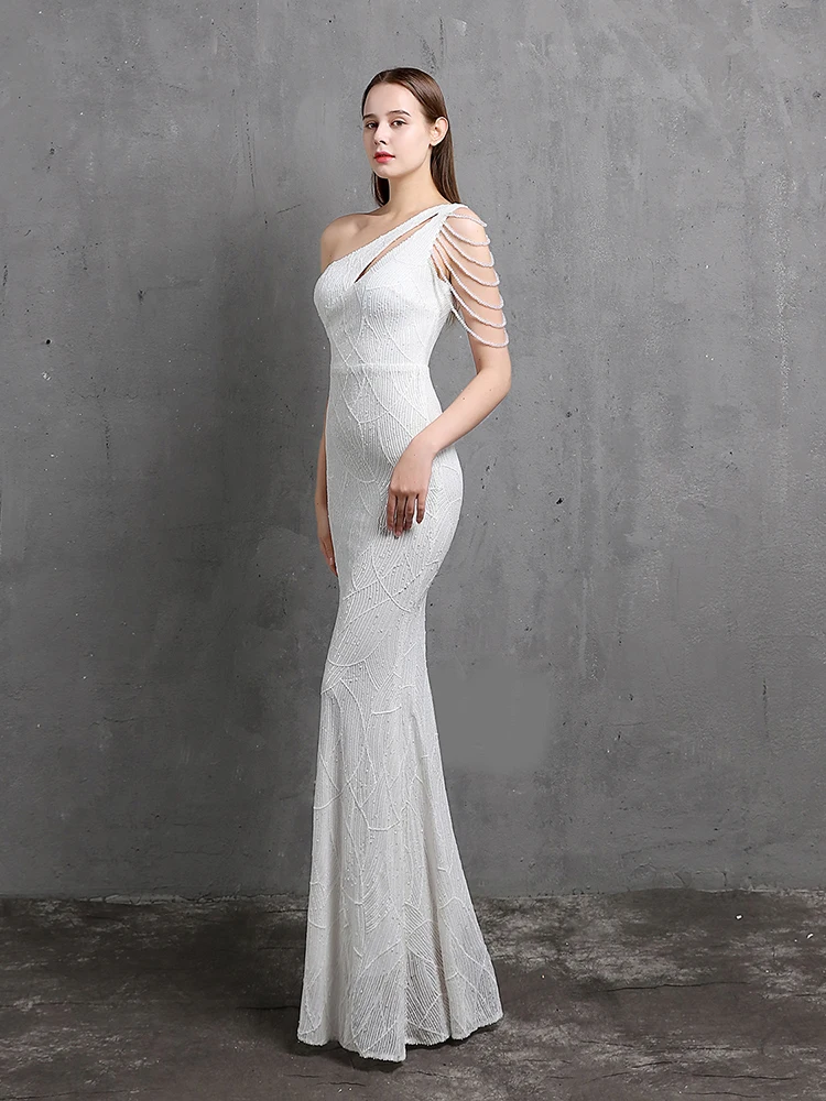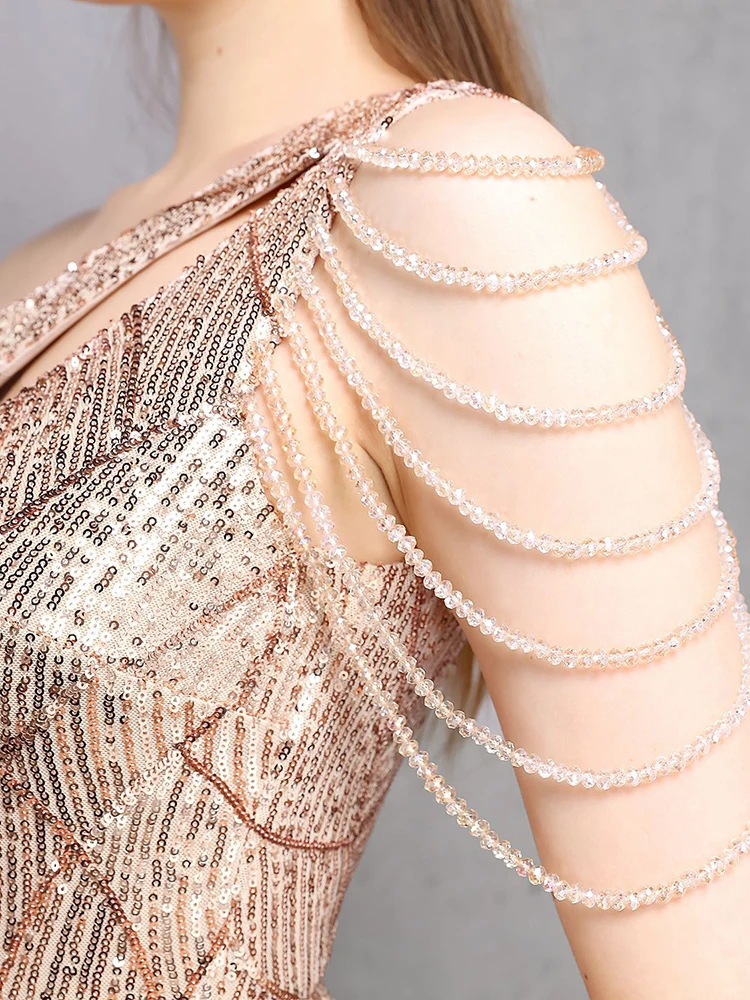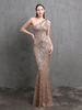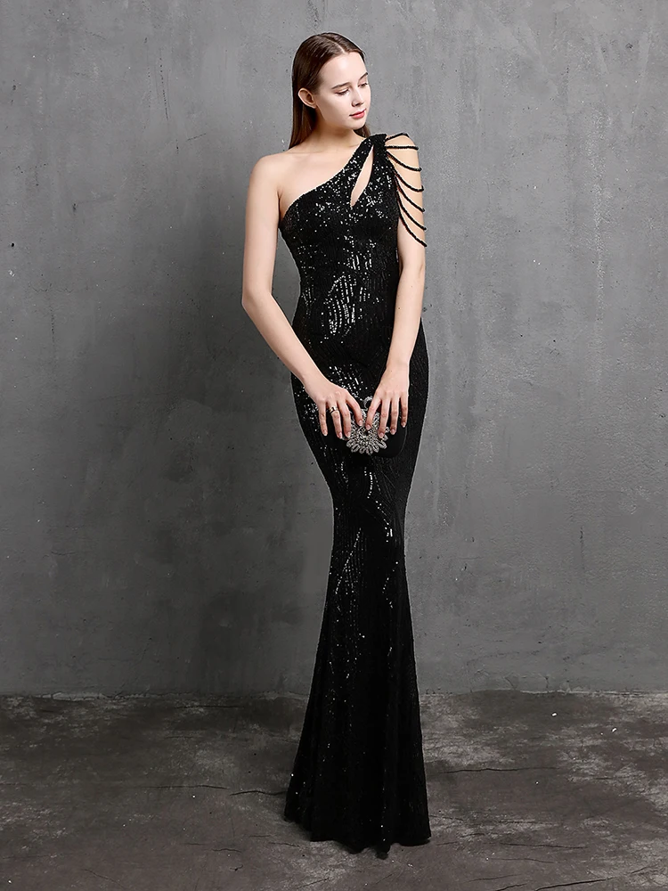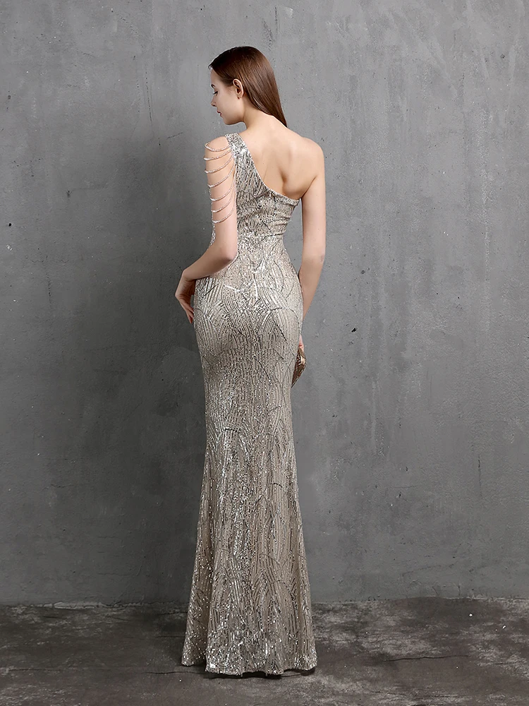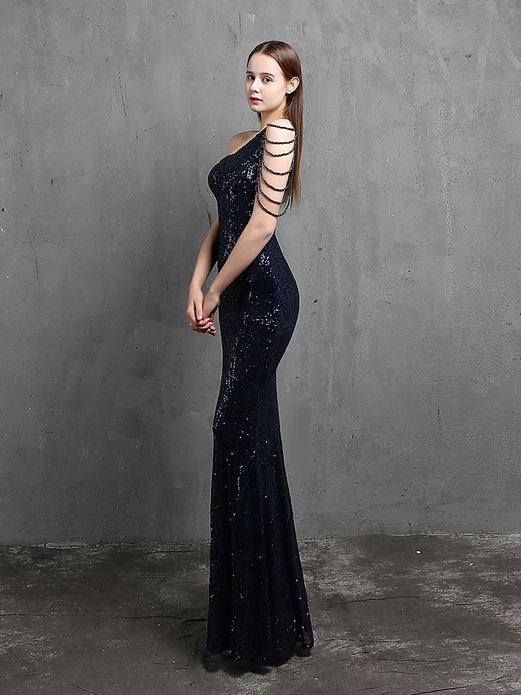 Fleepmart Elegant One Shoulder Mermaid Sequins Cocktail Party Dress Sleeveless Slim Tassels Crystal Prom Gowns Women Formal Dress Long
