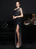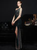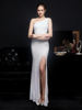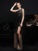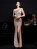 fleepmart Elegant One Shoulder Slit Gold Sequin Evening Dress 2022 Women Beads Party Maxi Dress