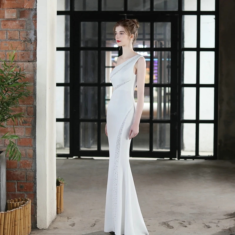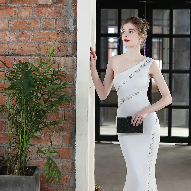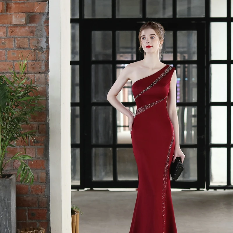 Fleepmart Elegant One Shoulder Soft Satin Evening Dress 2022 Women Crystal Party Maxi Dress Long Prom Dress