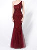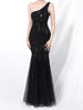 Fleepmart Elegant One Shoulder White Long Sequin Evening Dress 2021 New Women Party Dress Wedding Wear
