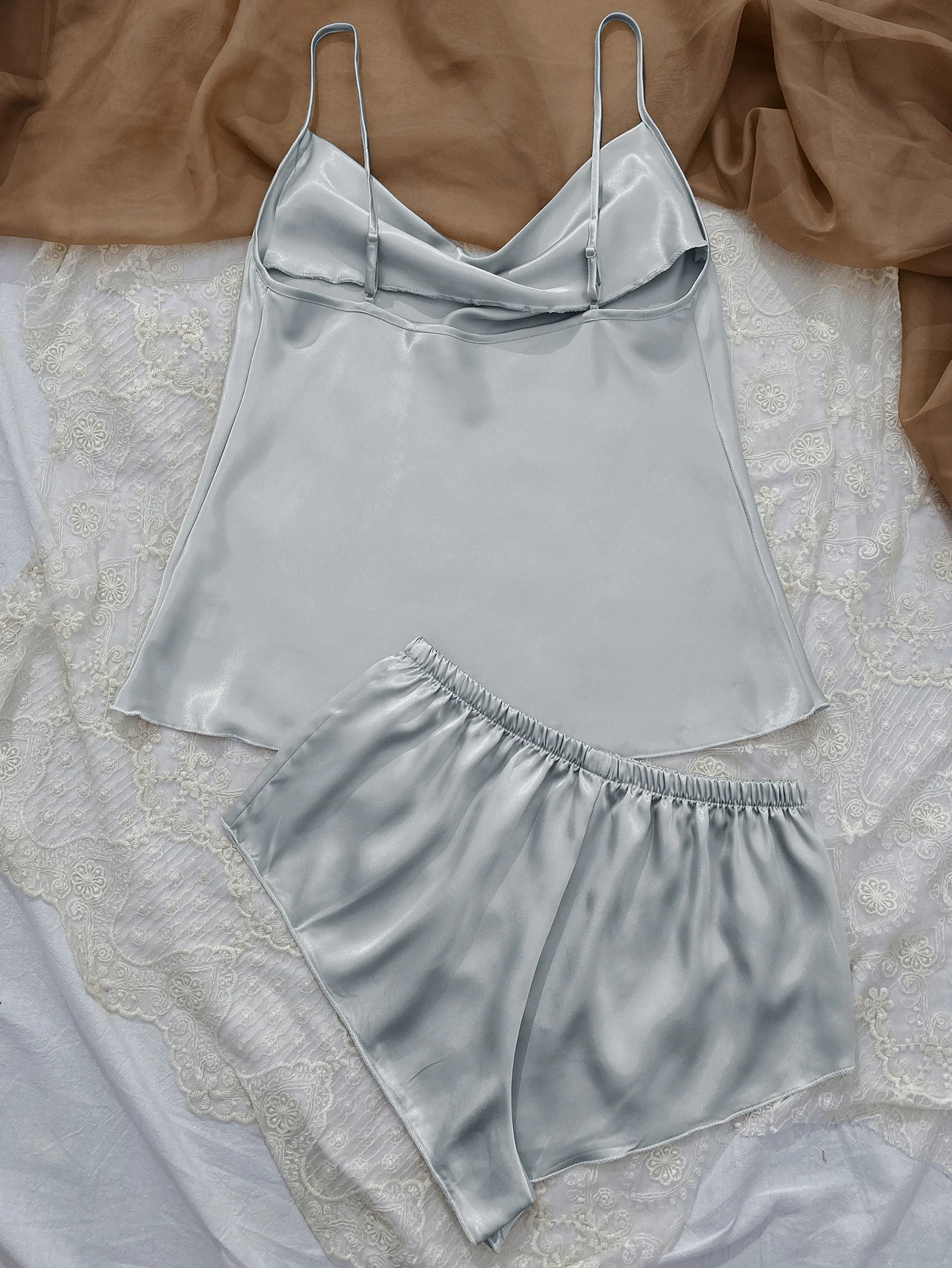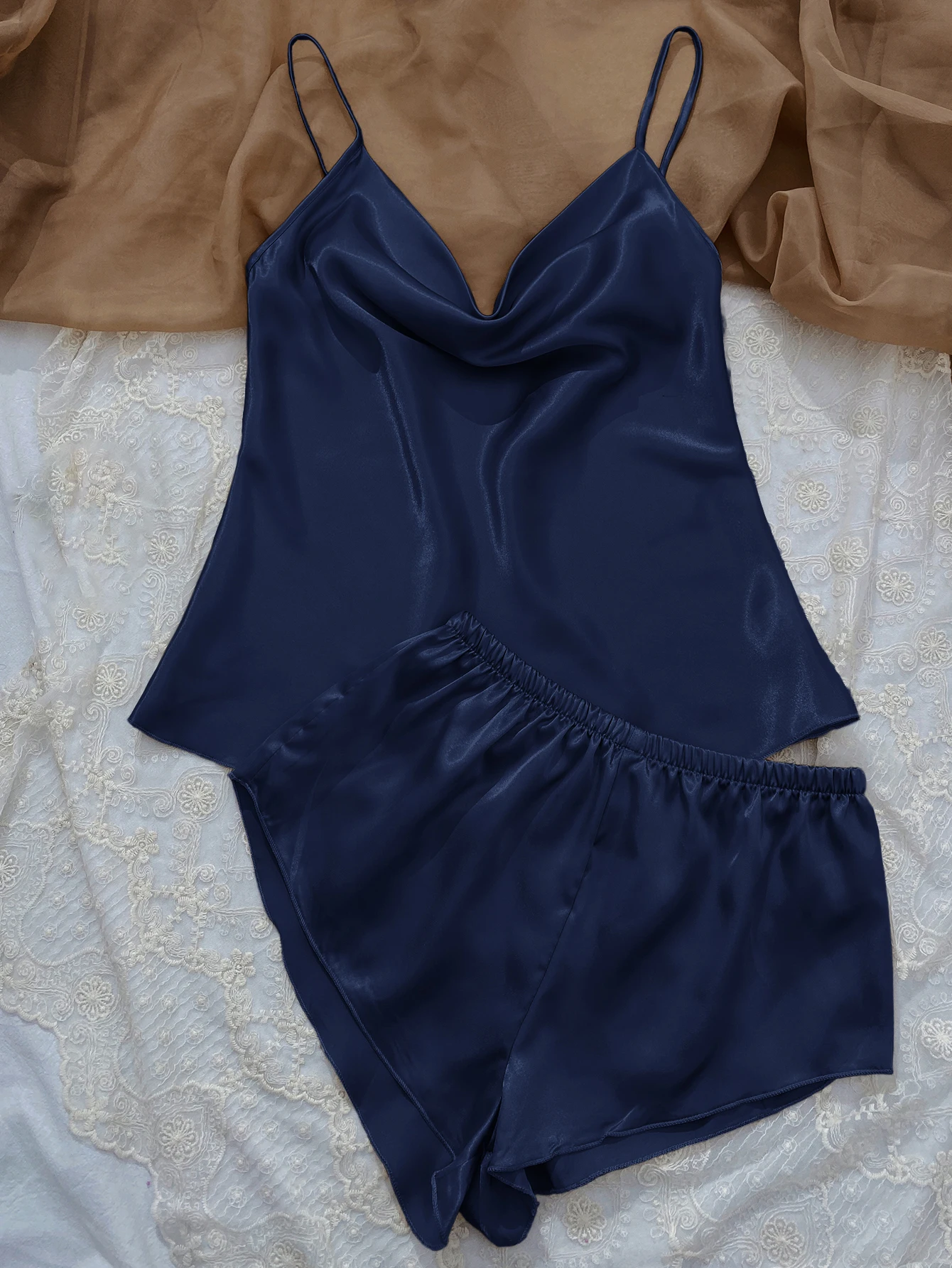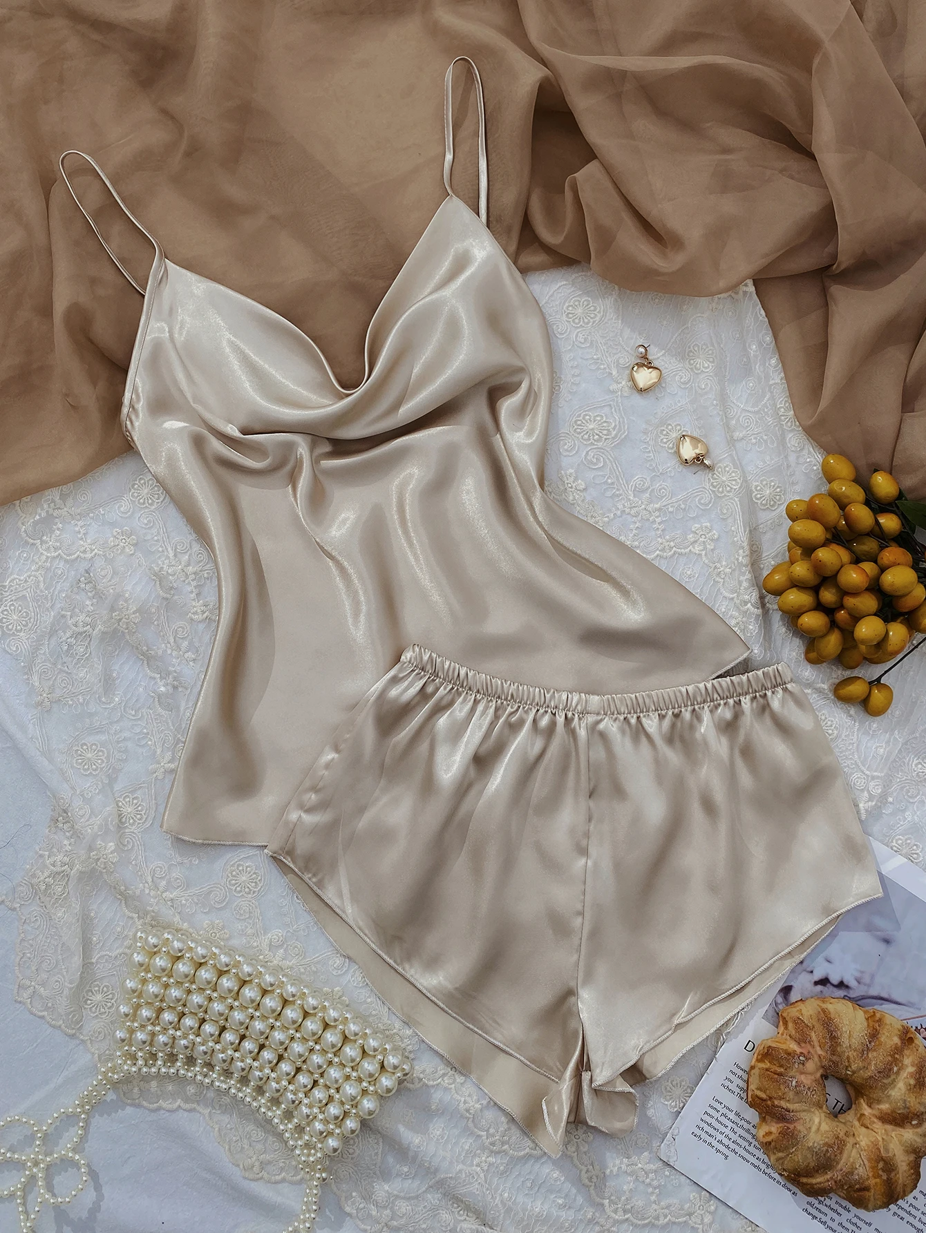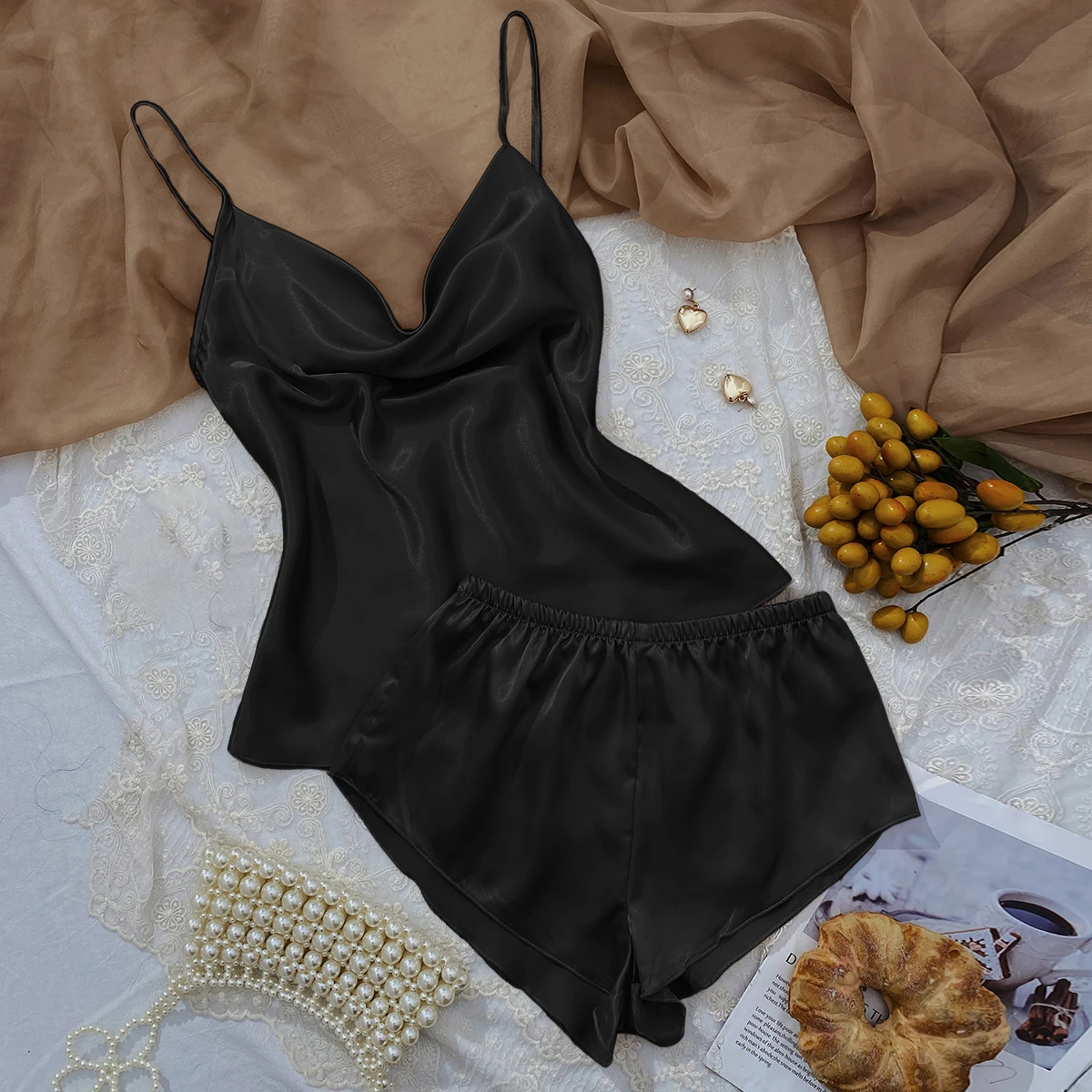 Fleepmart Elegant Pajama Satin Floral Plunge Neck Cami Tops Elastic Waistband Shorts For Valentine’s Gifts Womens Loungewear SleepweFleepmart Elegant Pajama Satin Floral Plunge Neck Cami Tops Elastic Waistband Shorts For Valentine’s Gifts Womens Loungewear Sleepwe