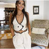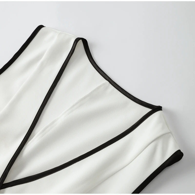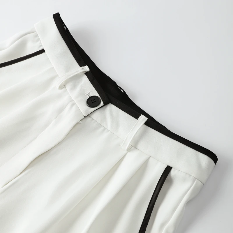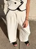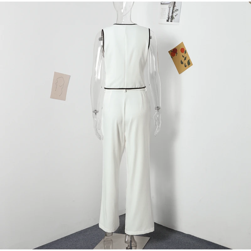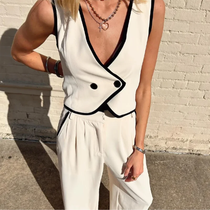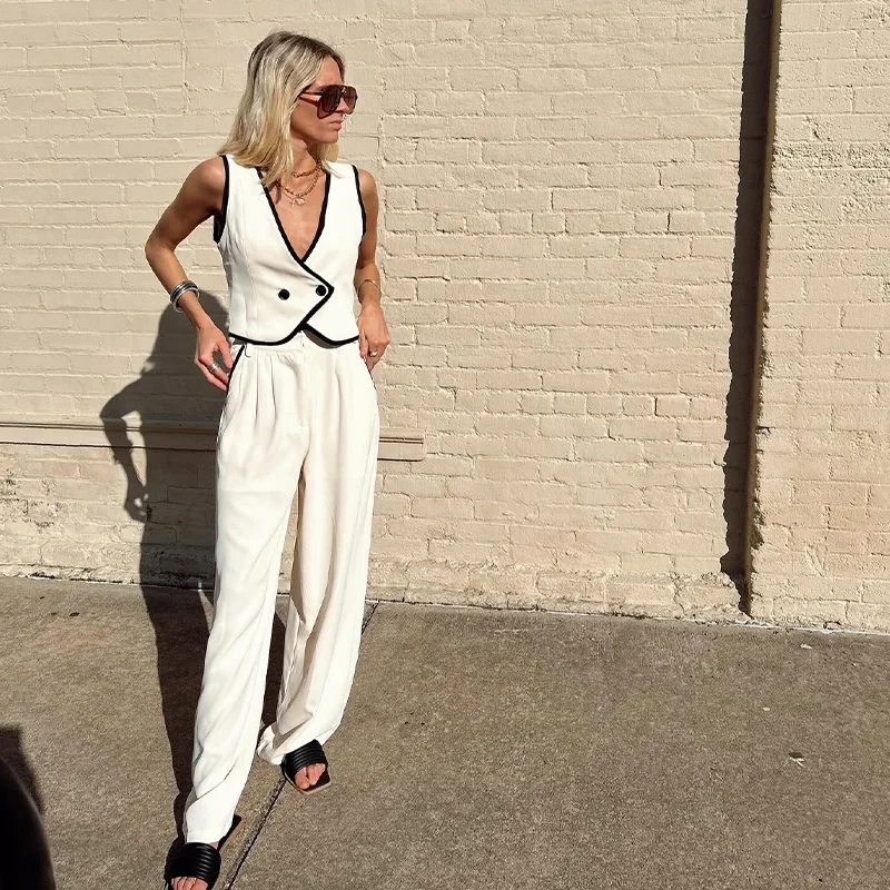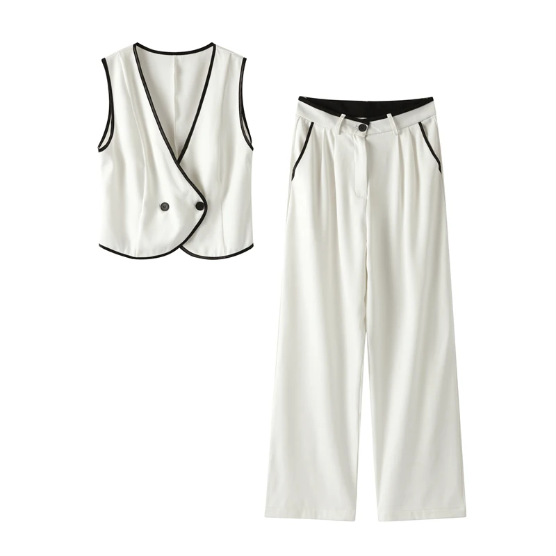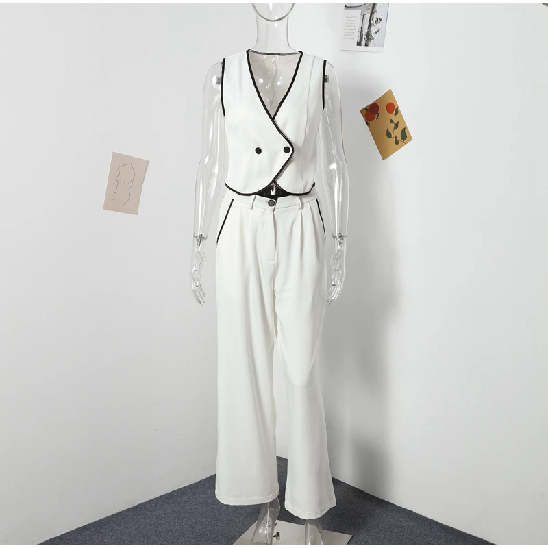 Fleepmart Elegant Patchwork Vest Pants Suit Women Single Breasted Sleeveless Waistcoat Wide Leg Trousers 2024 New Ladies 2 Pieces Set