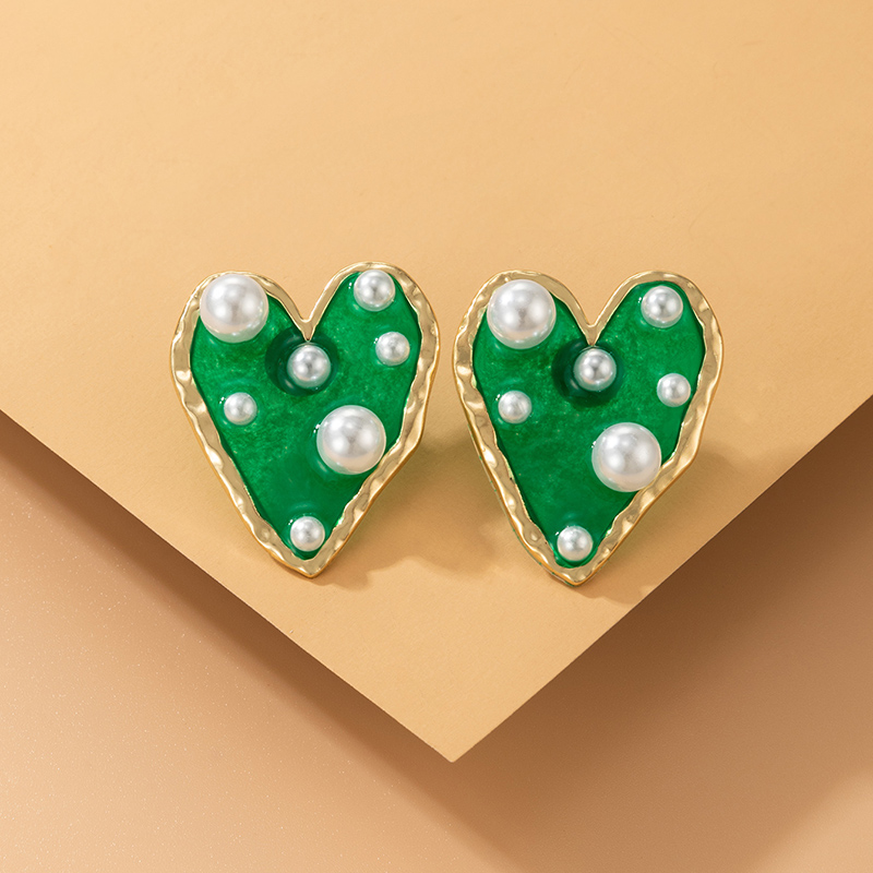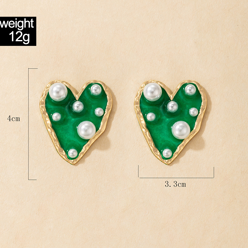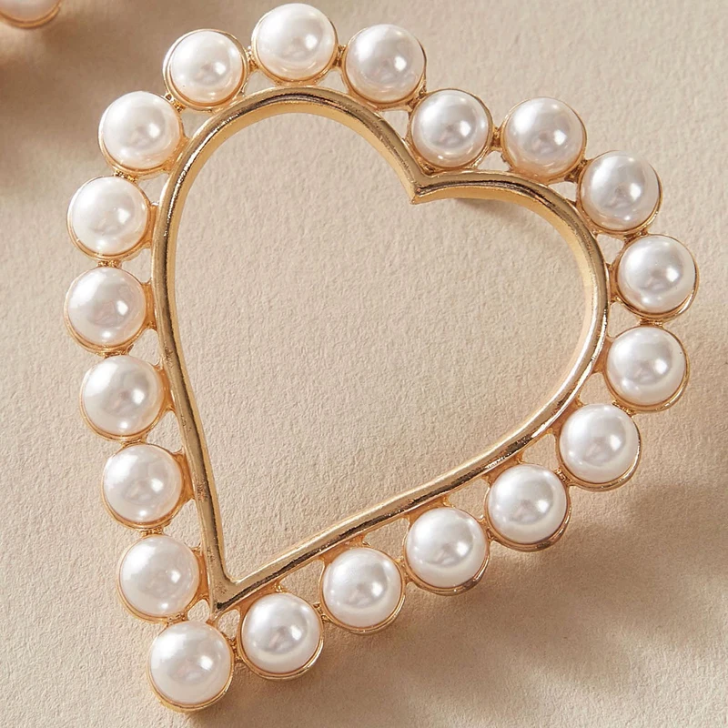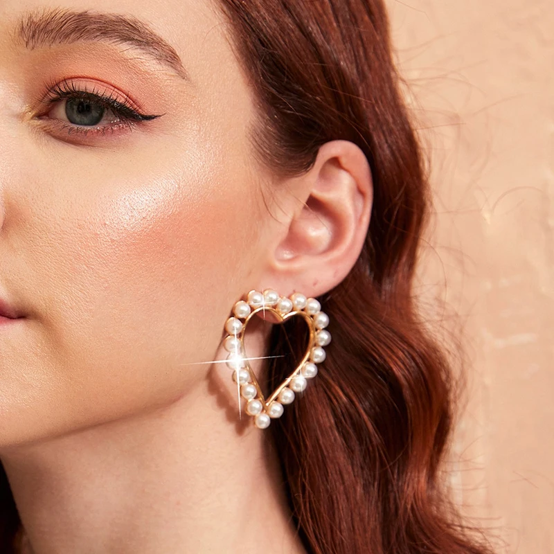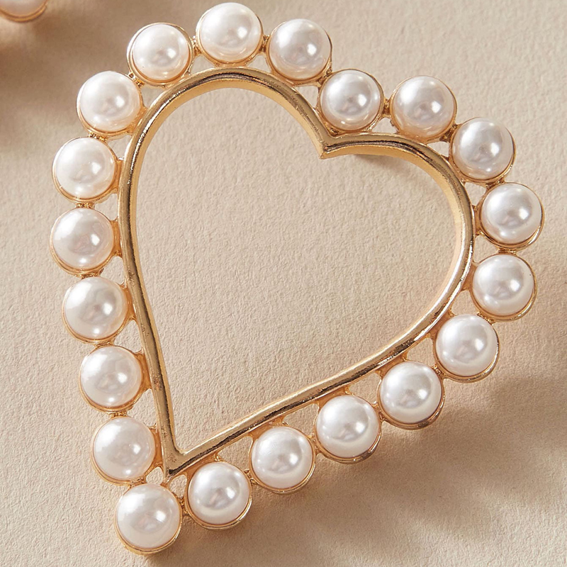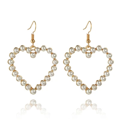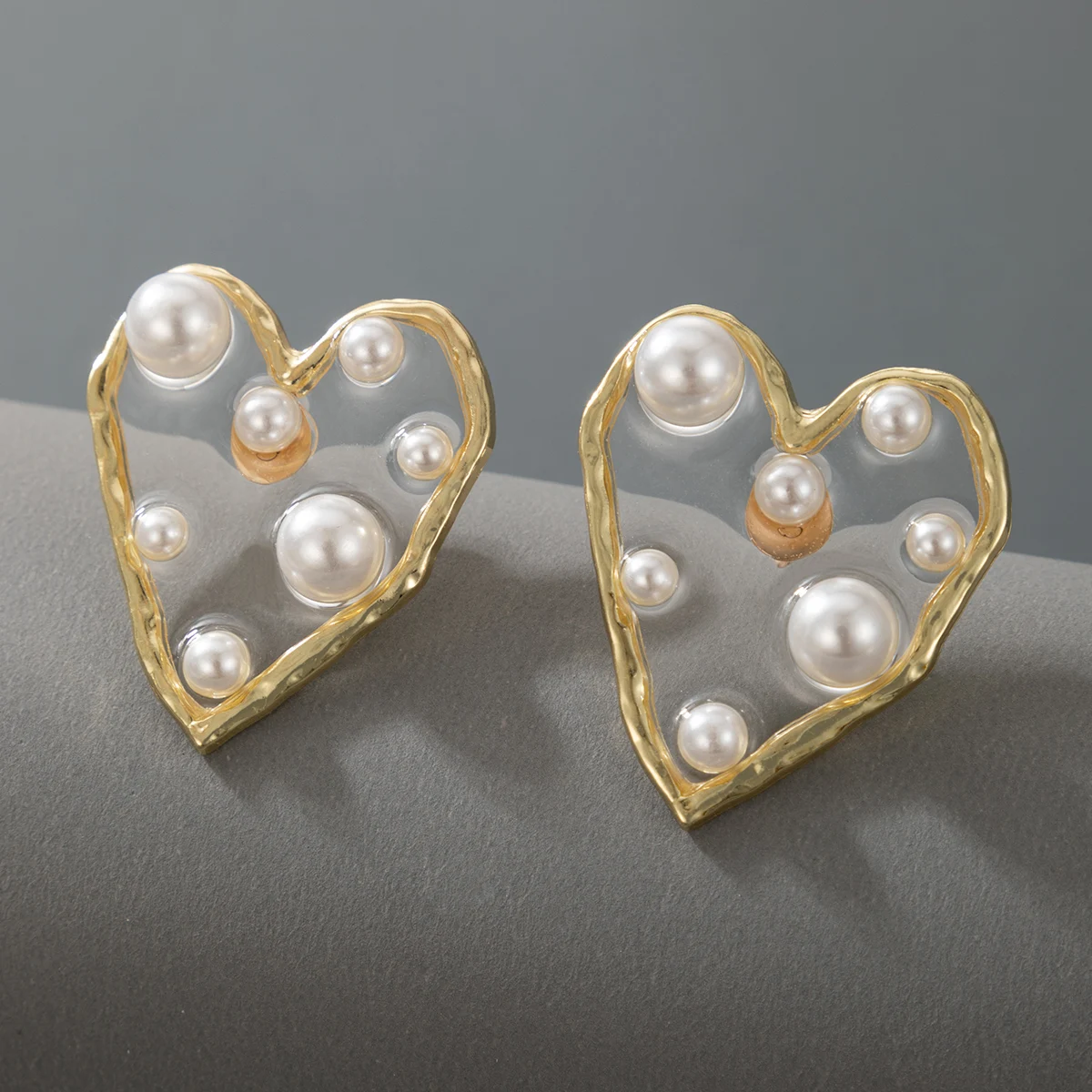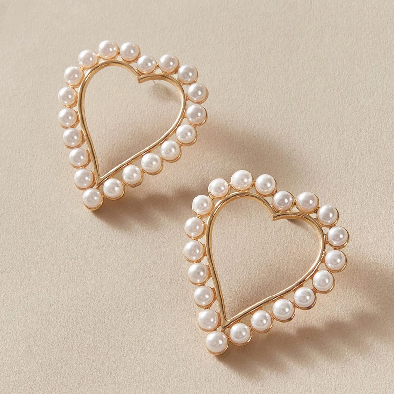 Fleepmart Elegant Pearl Stone Heart Stud Earrings for Women Charms Hollow Out Geoemtry Alloy Metal Wedding Jewelry сережки