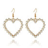 Fleepmart Elegant Pearl Stone Heart Stud Earrings for Women Charms Hollow Out Geoemtry Alloy Metal Wedding Jewelry сережки