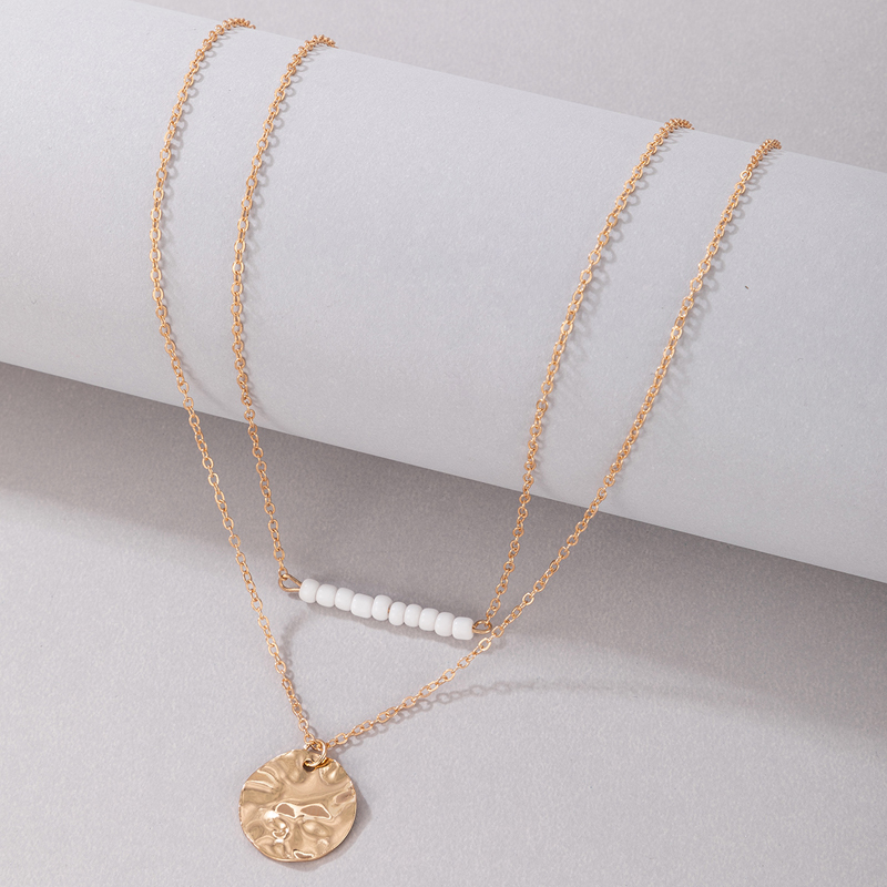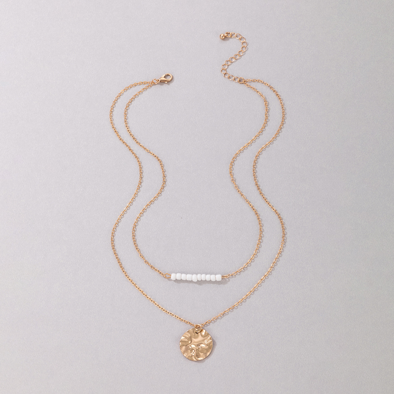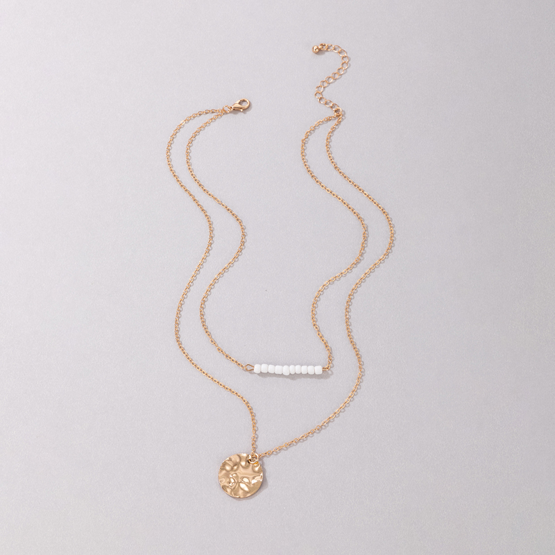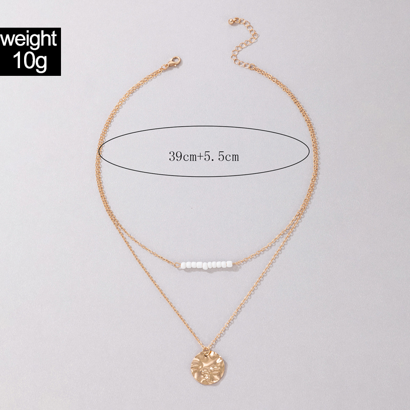 Fleepmart Elegant Pearl Stone Wafer Pendant Necklace for Women Gold Alloy Metal Multilayer Chain Choker Ajustable Jewelry