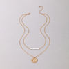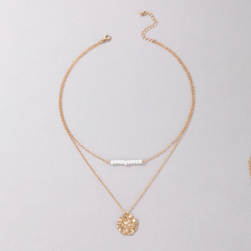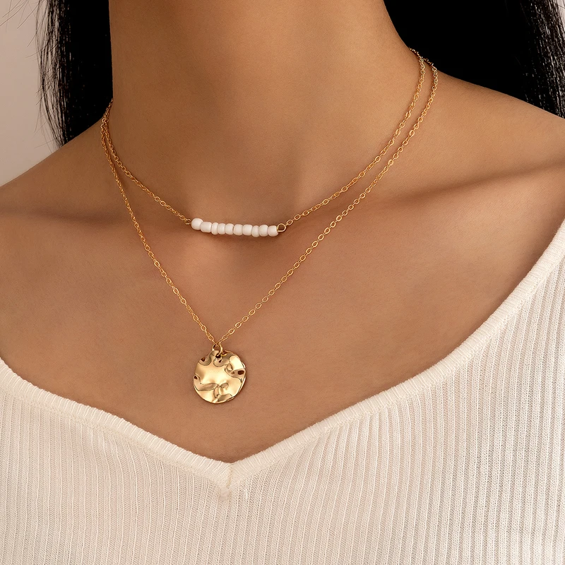 Fleepmart Elegant Pearl Stone Wafer Pendant Necklace for Women Gold Alloy Metal Multilayer Chain Choker Ajustable Jewelry