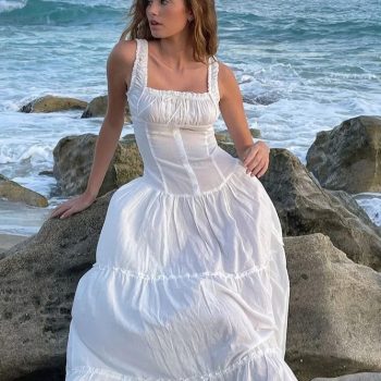 Fleepmart Elegant Ruffle Ruched Midi Dress For Women Robe Summer New Backless Sleeveless Irregular Club Party Sexy Dress Vestido