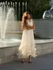 Fleepmart Elegant Ruffle V-neck Maxi Dress Women Chic Lapel Pleated Sleeveless High Waist Dresses Fashion 2025 Summer Lady Vacation Robes