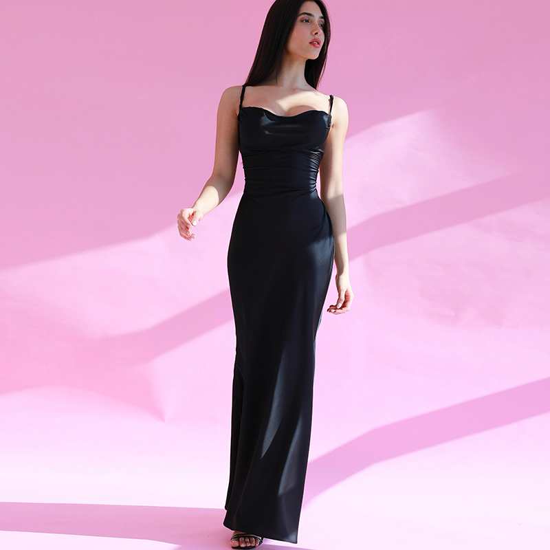 Fleepmart Elegant Satin Slips Backless Solid Bandage Sexy Bodycon Maxi Dress Summer Women Clothes Evening Party Birthday Vacation