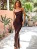Fleepmart Elegant Satin Slips Backless Solid Bandage Sexy Bodycon Maxi Dress Summer Women Clothes Evening Party Birthday Vacation