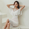 Fleepmart Elegant Sexy Party Dress Ruffled Hollow Lace Stitched Half Turtleneck Slim Bodycon Nightclub Dress 2024 Korean New Fashion