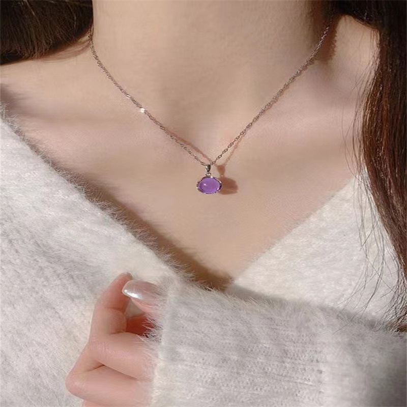 Fleepmart Elegant Simple Design Purple Round Crystal Pendant Necklace For Women Shiny Crystal Fashion Party Jewelry