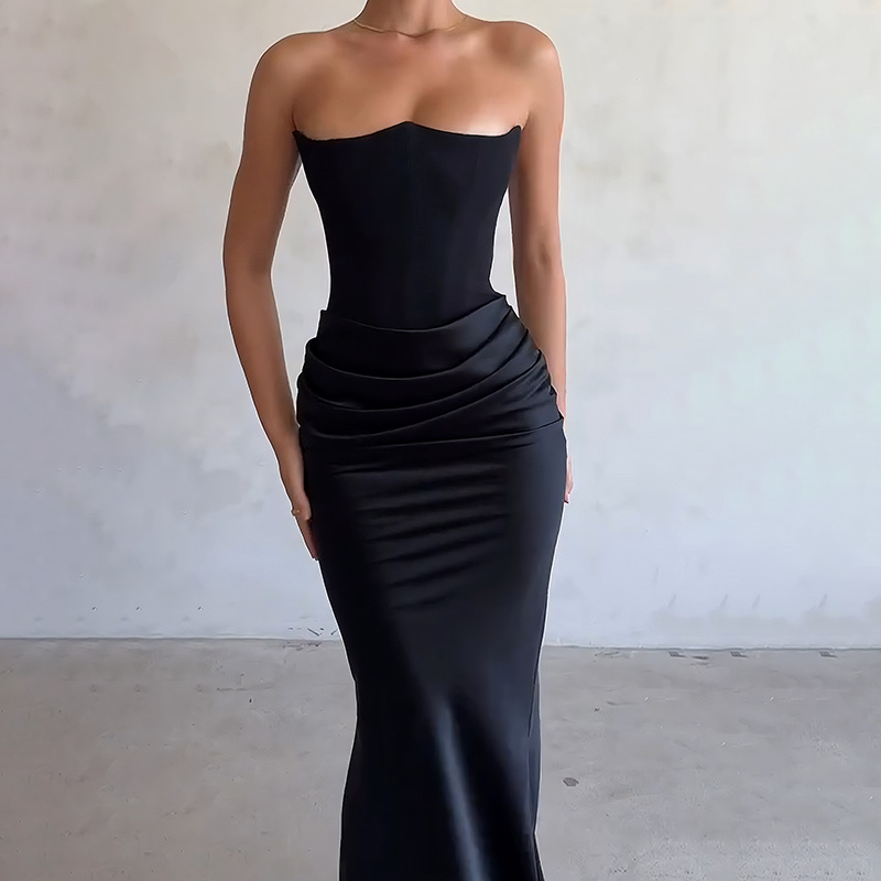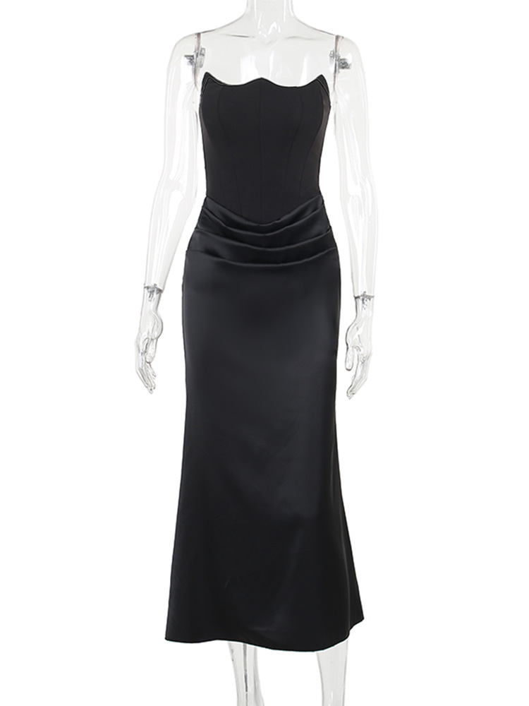 Fleepmart Elegant Strapless Sexy Dress Women Black Fashion Off-shoulder Backless Club Party Long Dress