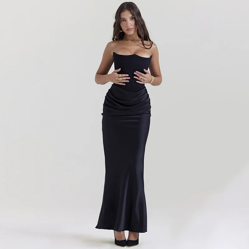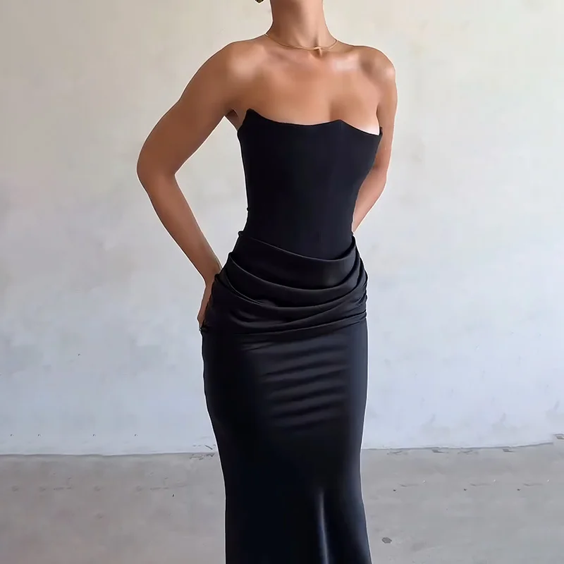Fleepmart Elegant Strapless Sexy Dress Women Black Fashion Off-shoulder Backless Club Party Long Dress